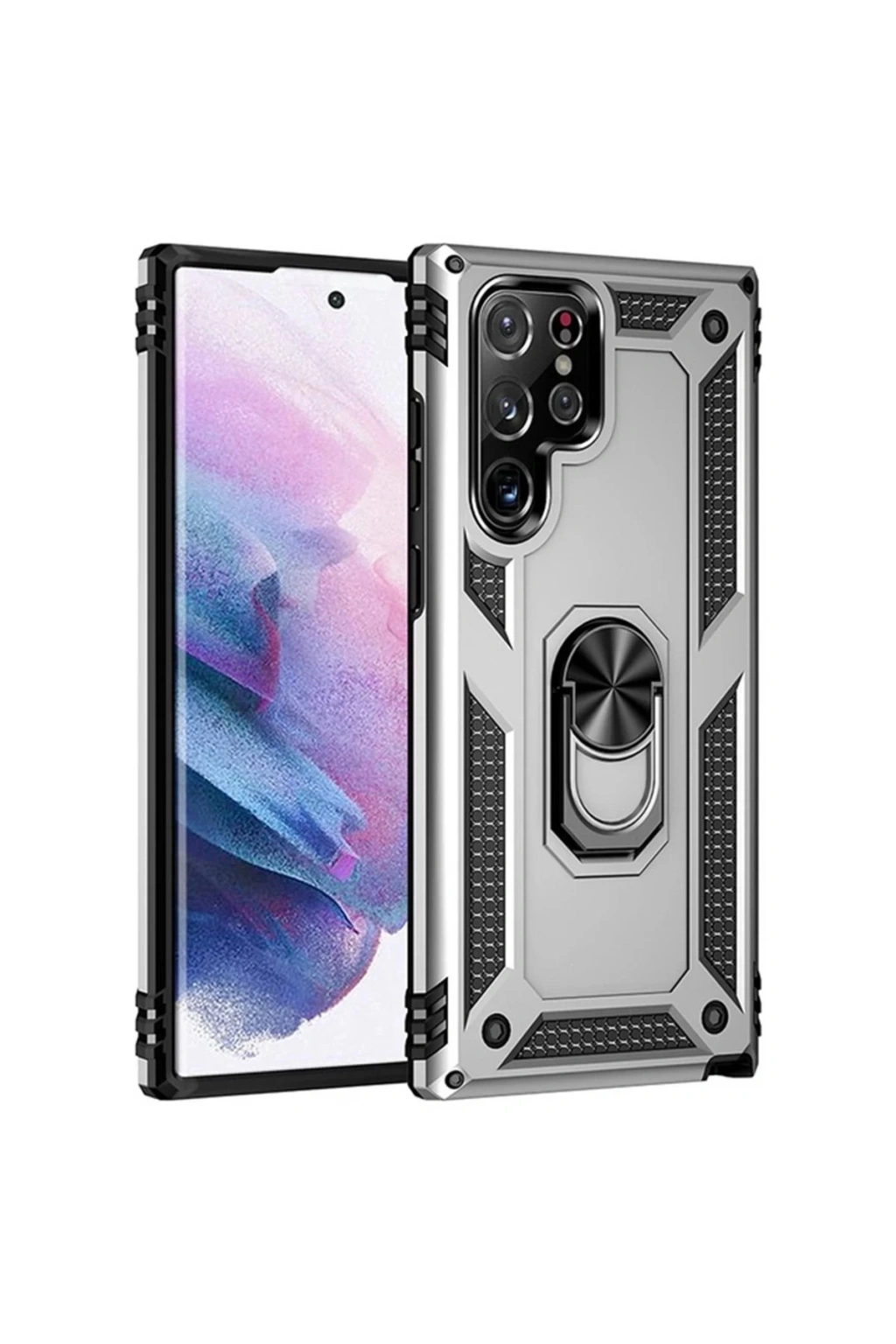 HarmonyAura Samsung Galaxy S21 Ultra Kılıf Sofya Yüzüklü Silikon Kapak - Gümüş