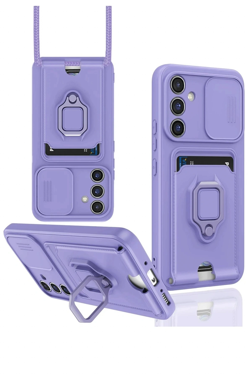 HarmonyAura Samsung Galaxy S23 Fe Kılıf Zuma Kartvizitli Yüzüklü Silikon - Lila