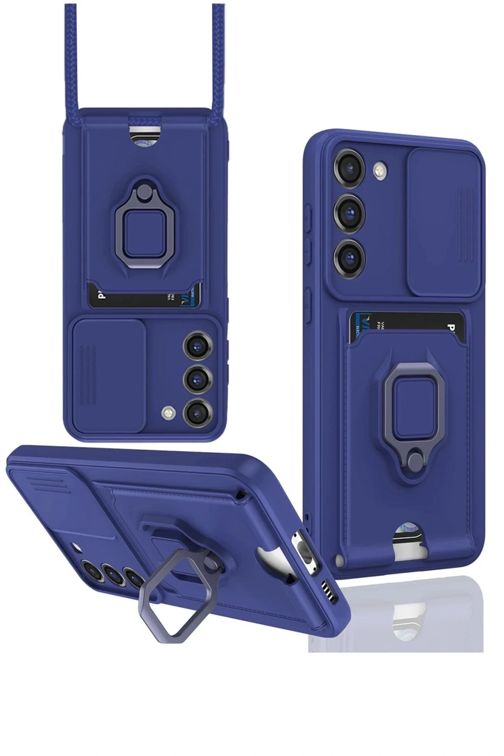 HarmonyAura Samsung Galaxy S23 Plus Kılıf Zuma Kartvizitli Yüzüklü Silikon - Lacivert