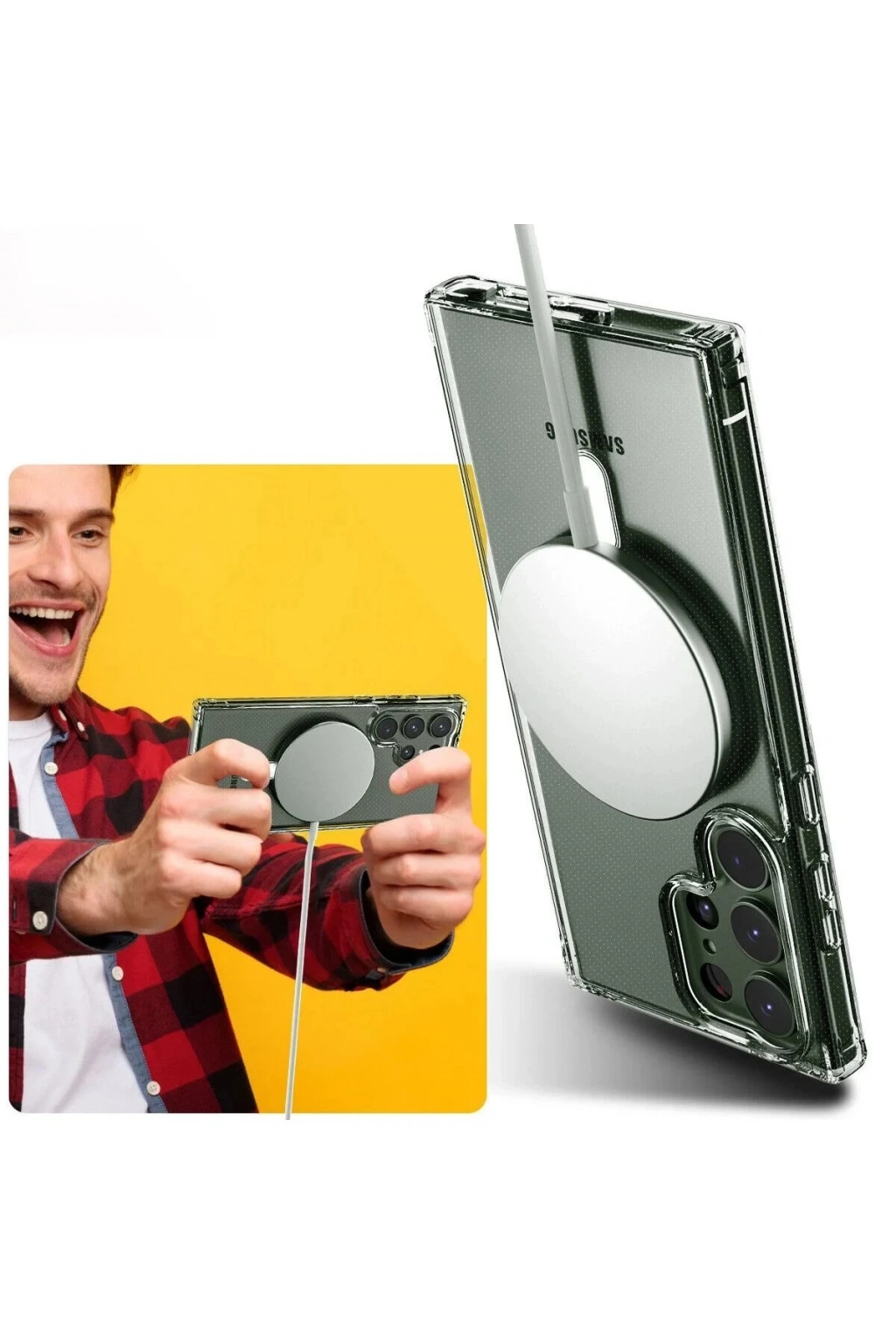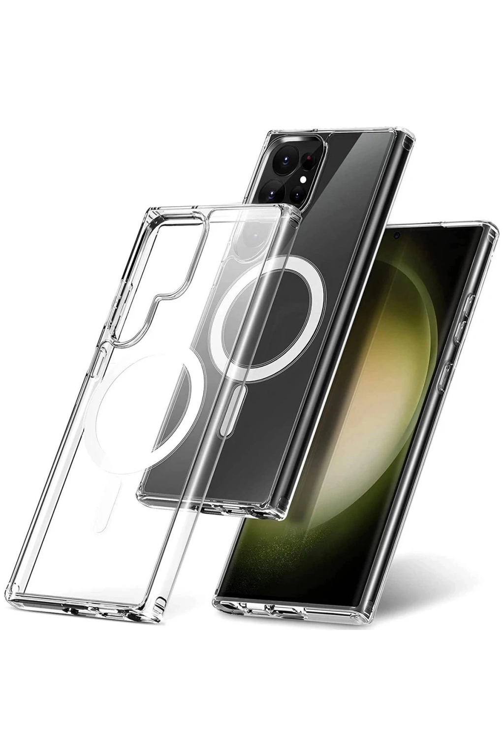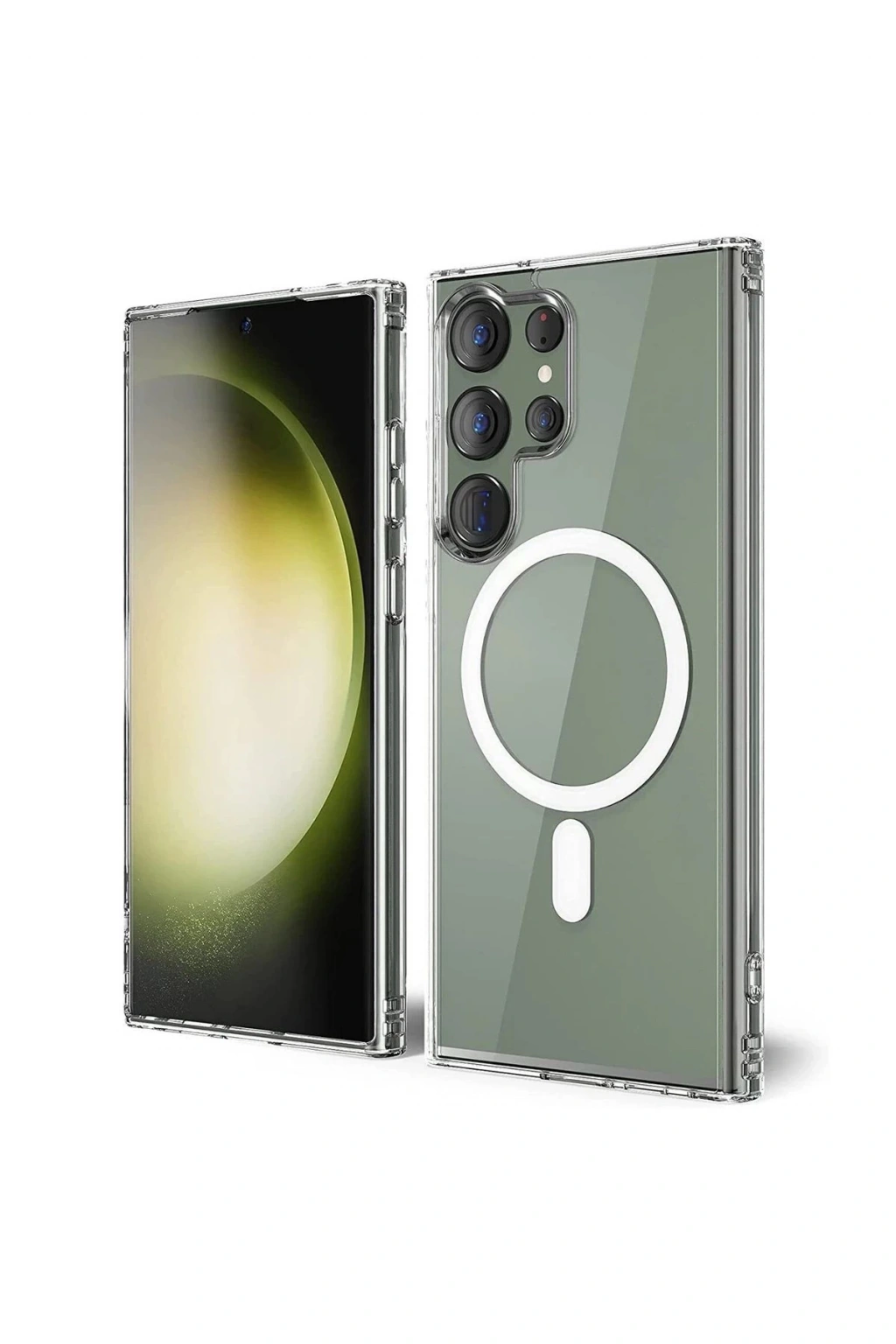 HarmonyAura Samsung Galaxy S23 Ultra Kılıf Magneticsafe Şeffaf Silikon - Şeffaf