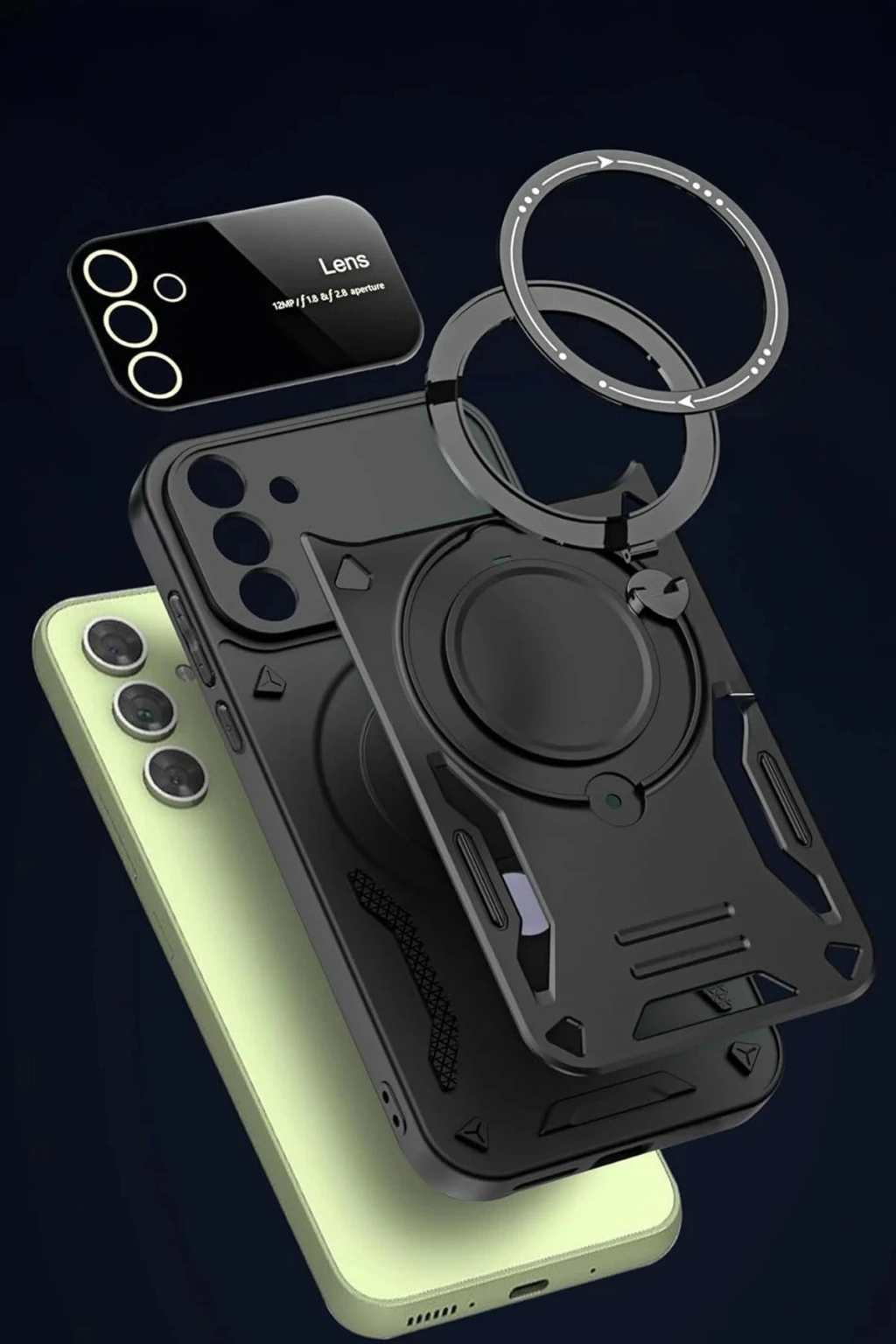 HarmonyAura Samsung Galaxy S24 Fe Kılıf Joy Lens Standlı Kapak - Koyu Yeşil
