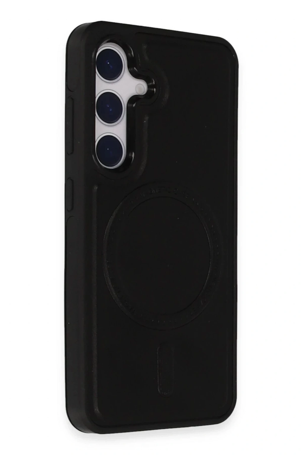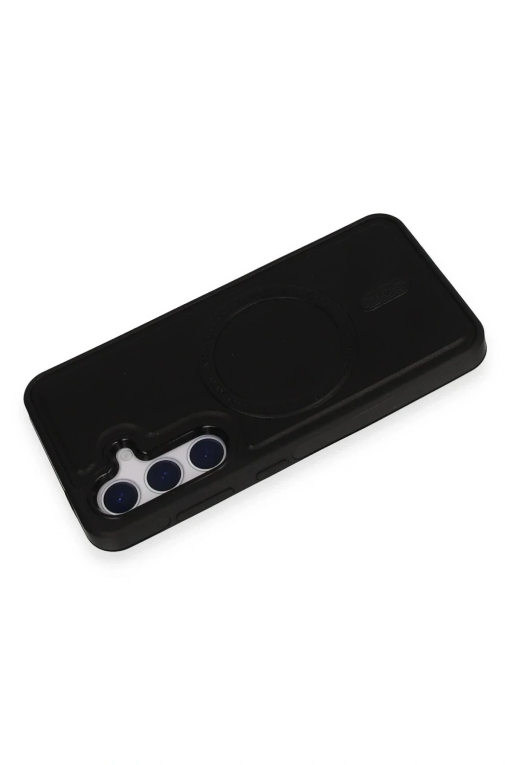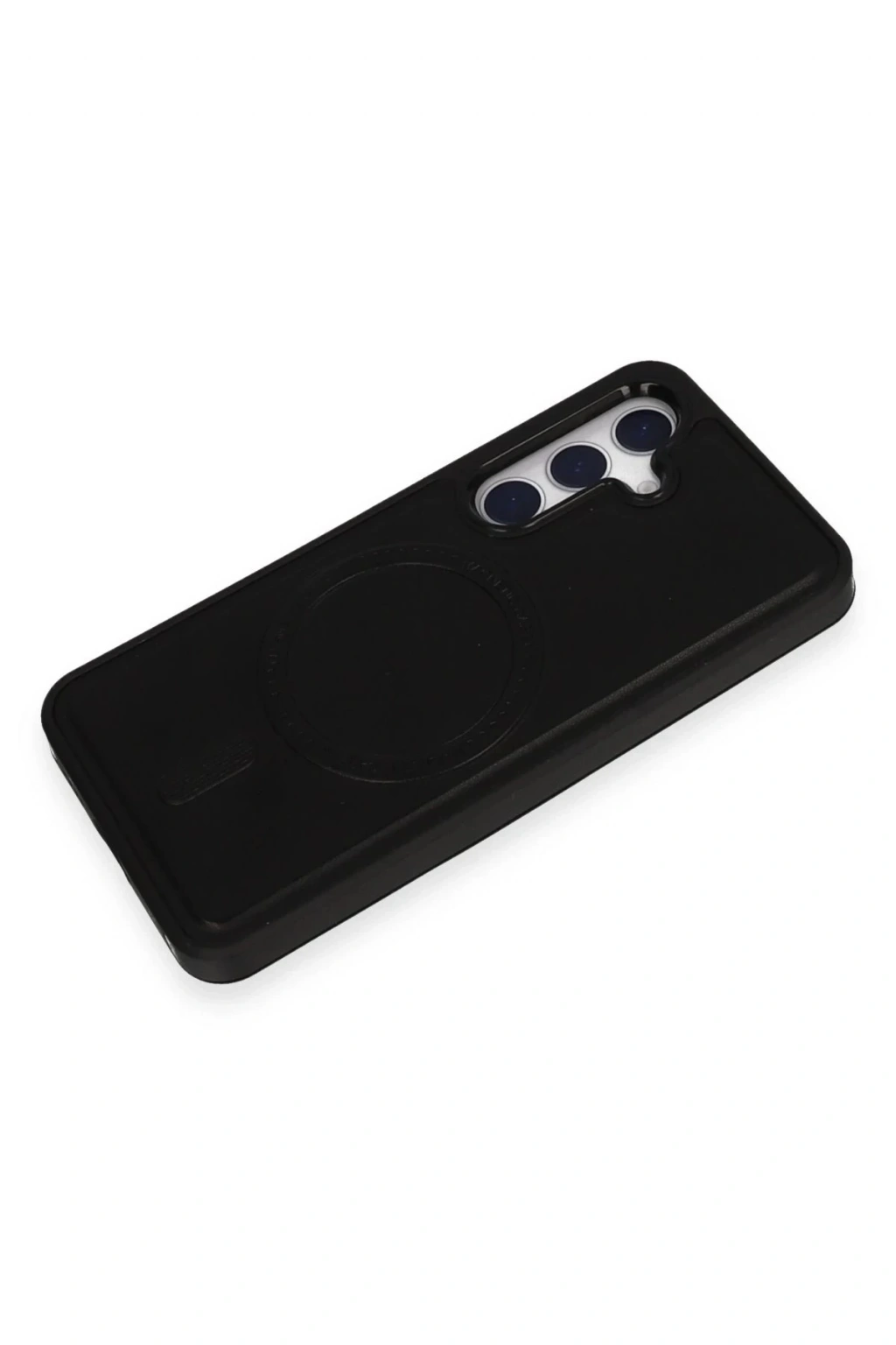 HarmonyAura Samsung Galaxy S24 Kılıf Ozzi Magsafe Deri Kapak - Siyah