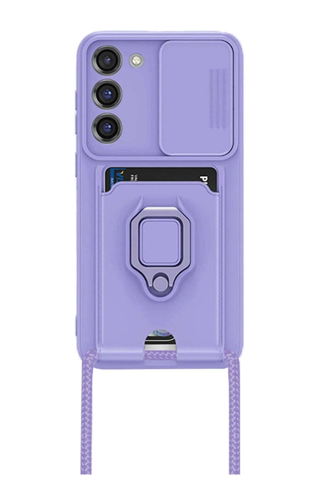 HarmonyAura Samsung Galaxy S24 Plus Kılıf Zuma Kartvizitli Yüzüklü Silikon - Lila