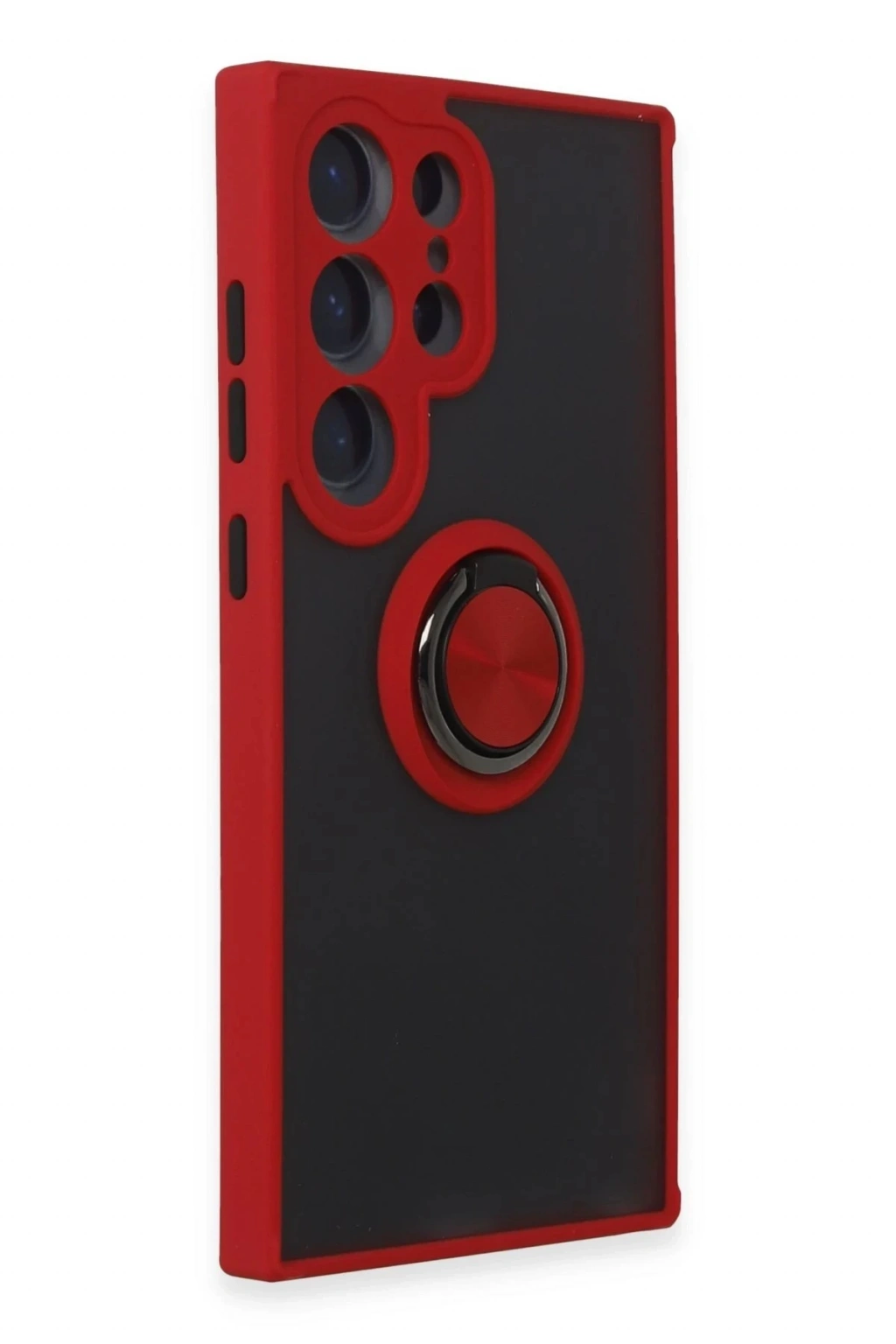 HarmonyAura Samsung Galaxy S24 Ultra Kılıf Montreal Yüzüklü Silikon Kapak - Kırmızı