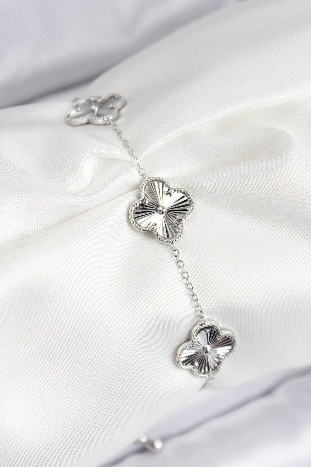 HarmonyAura VIP Pirinç Yonca Model Gümüş Renk Kadın Bileklik