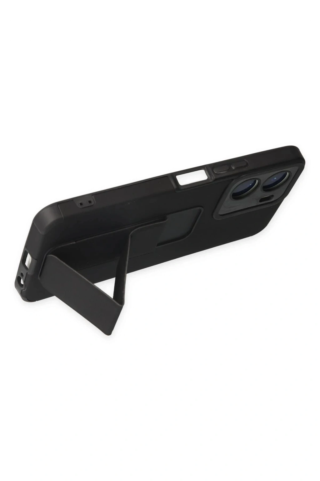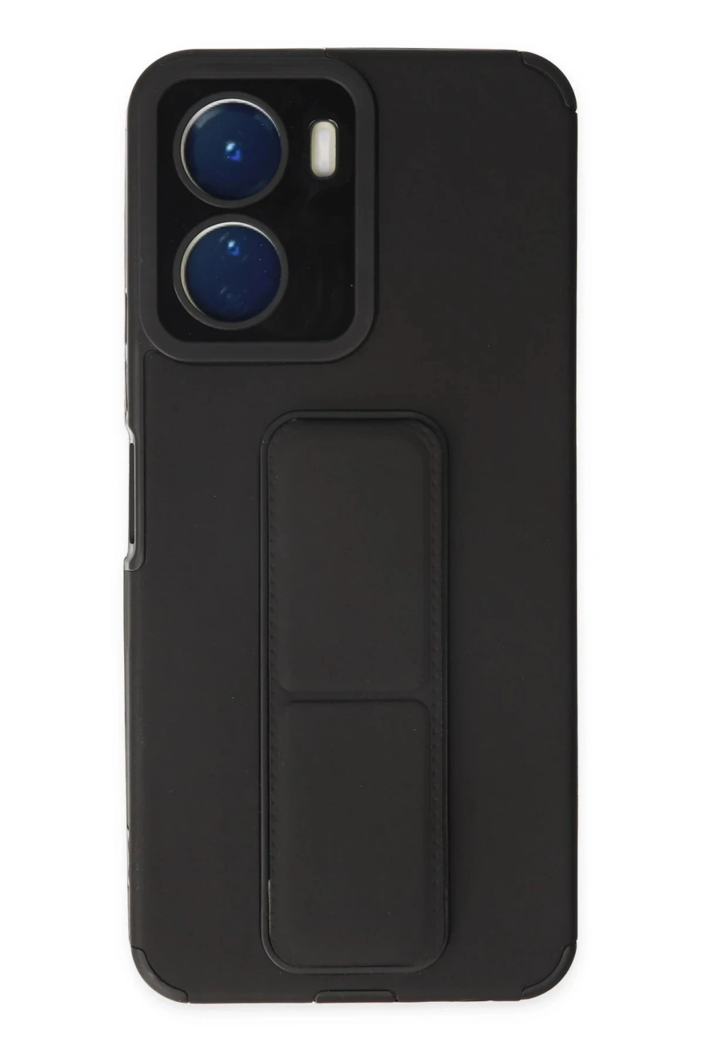 HarmonyAura Vivo Y16 Kılıf Mega Standlı Silikon - Siyah