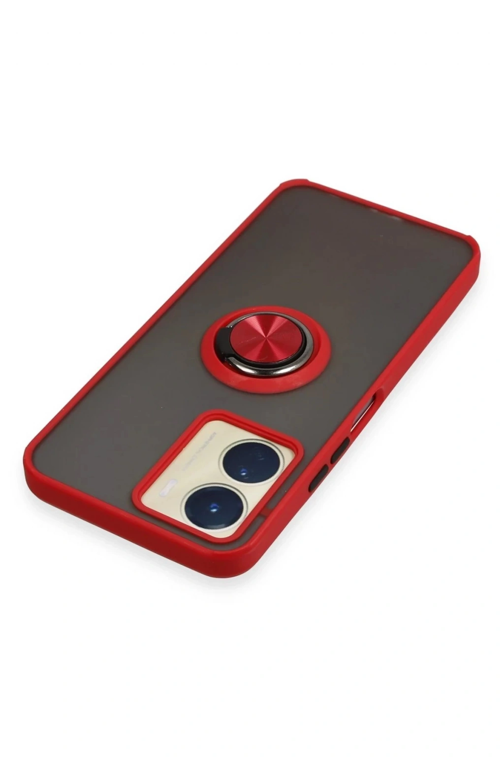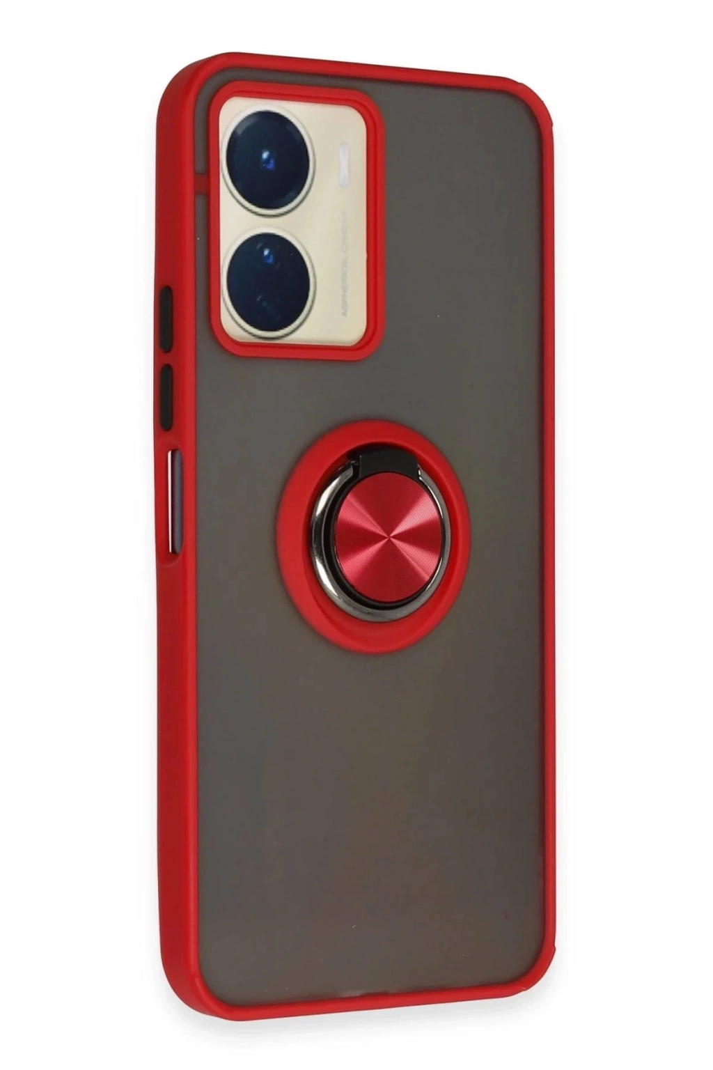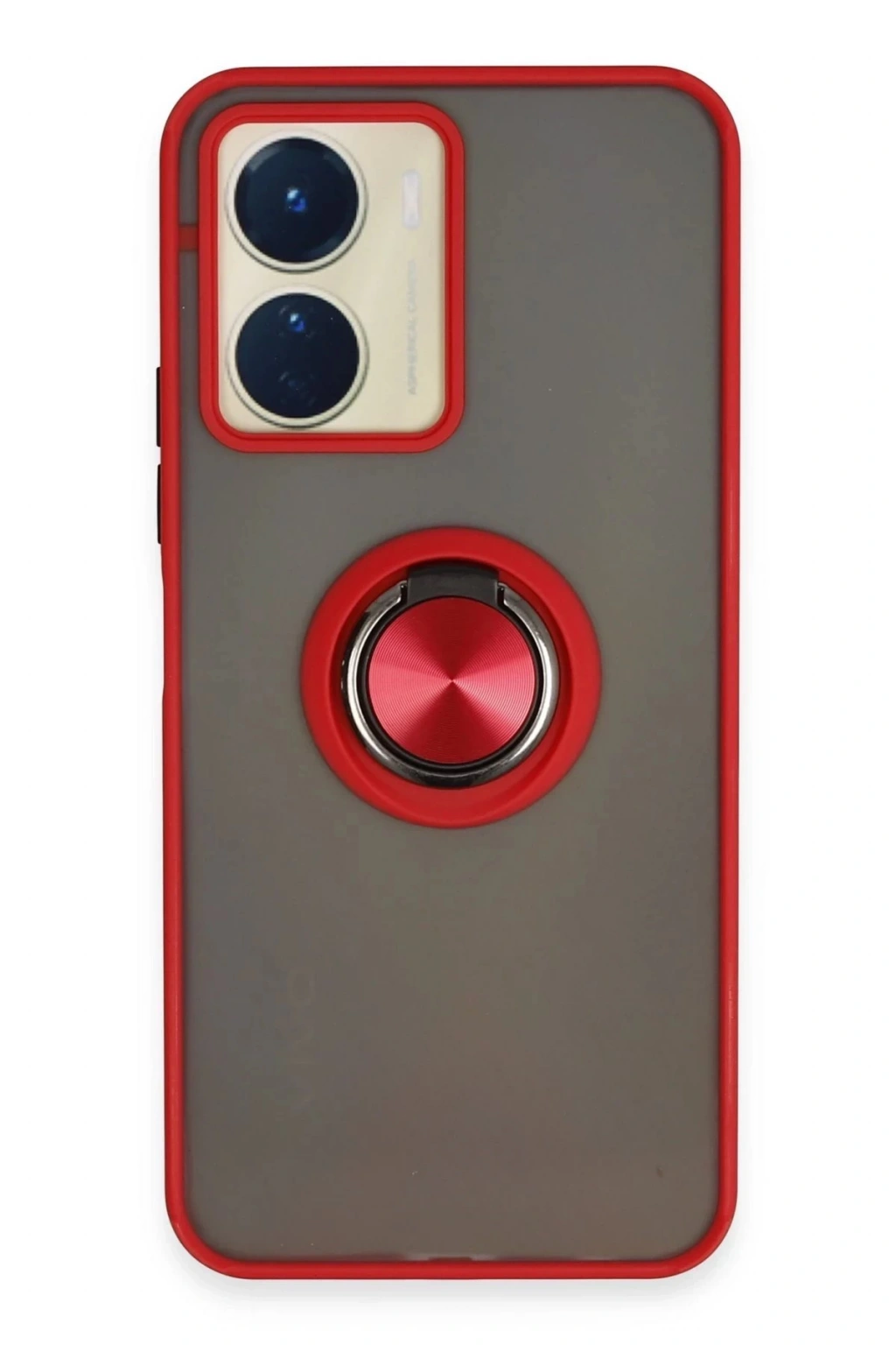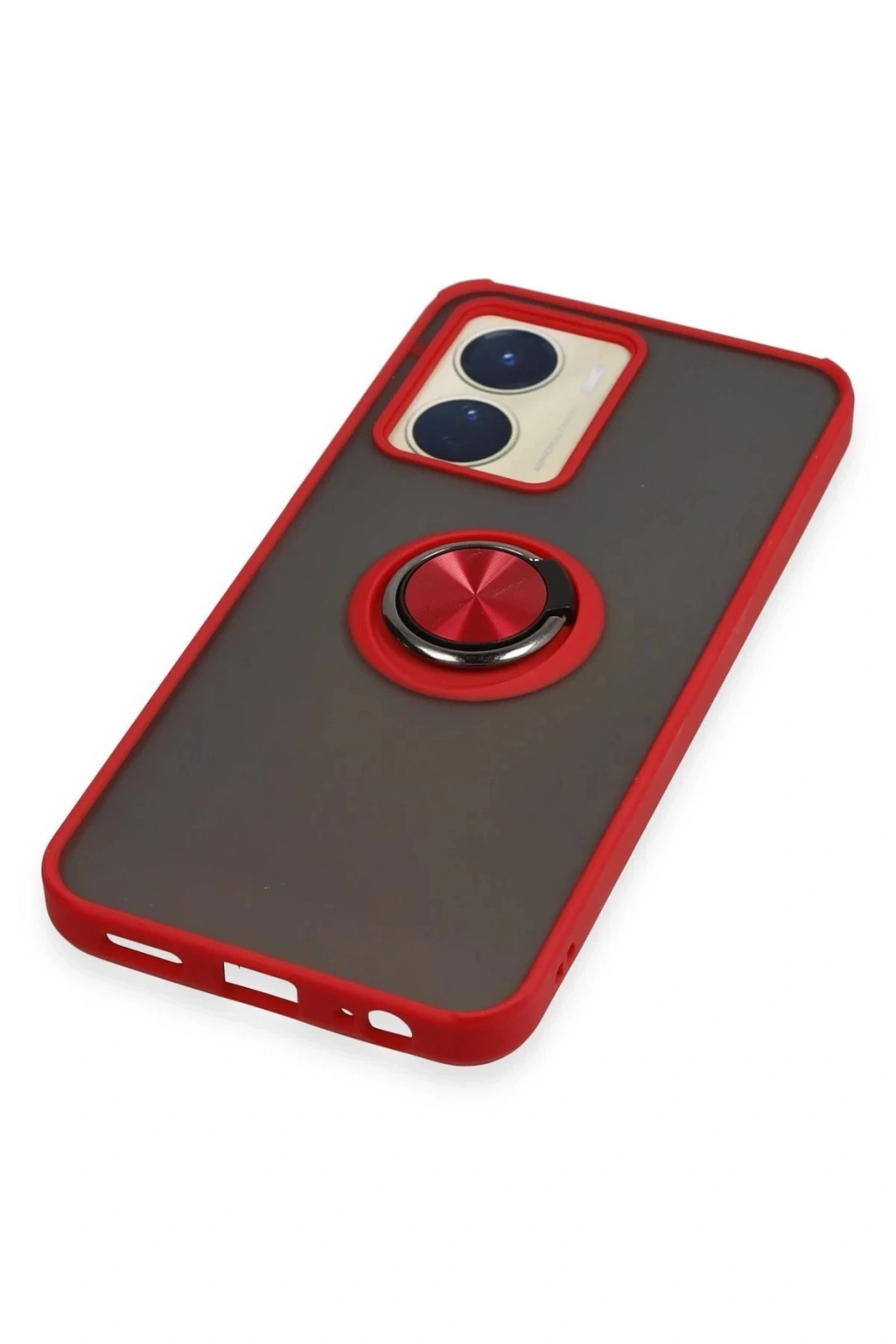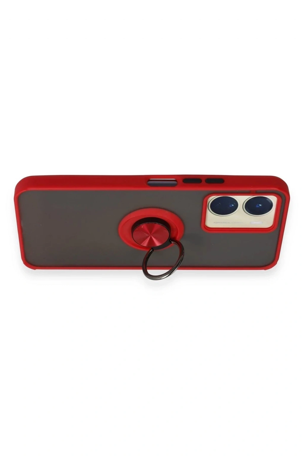 HarmonyAura Vivo Y16 Kılıf Montreal Yüzüklü Silikon Kapak - Kırmızı