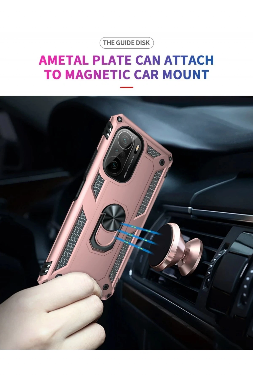 HarmonyAura Xiaomi Poco F3 Kılıf Sofya Yüzüklü Silikon Kapak - Rose