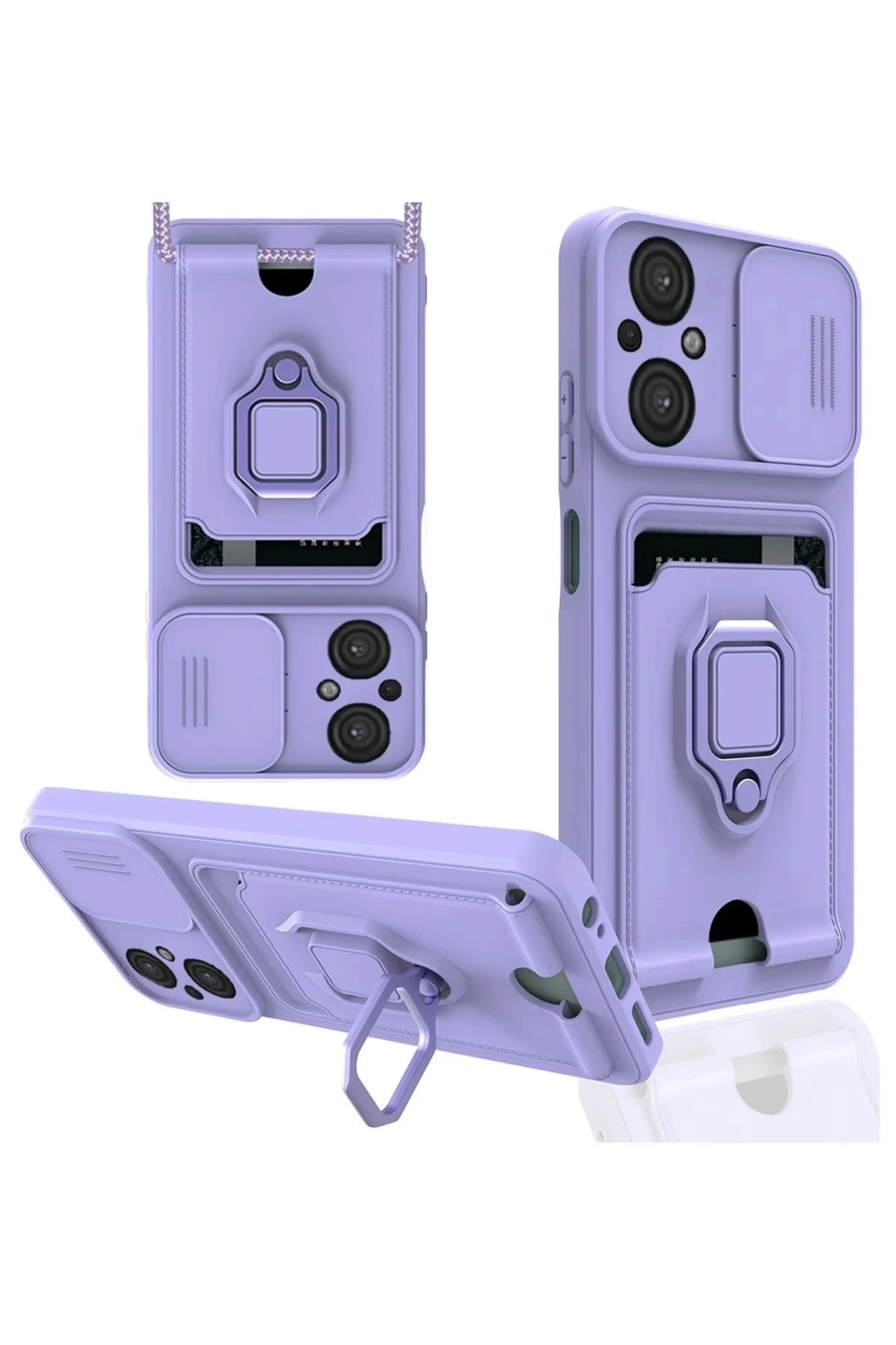 HarmonyAura Xiaomi Poco M5 Kılıf Zuma Kartvizitli Yüzüklü Silikon - Lila