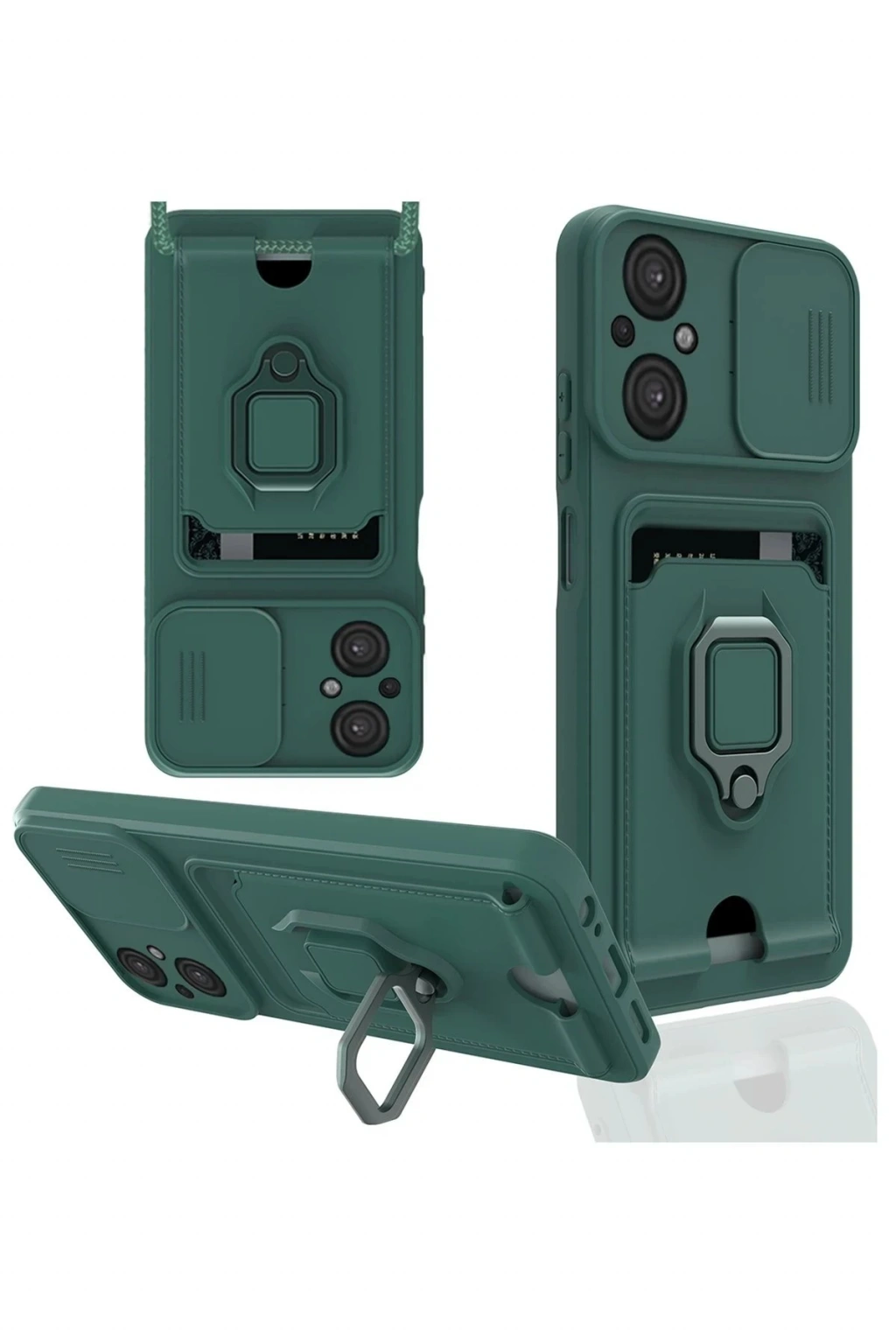 HarmonyAura Xiaomi Poco M5 Kılıf Zuma Kartvizitli Yüzüklü Silikon - Yeşil