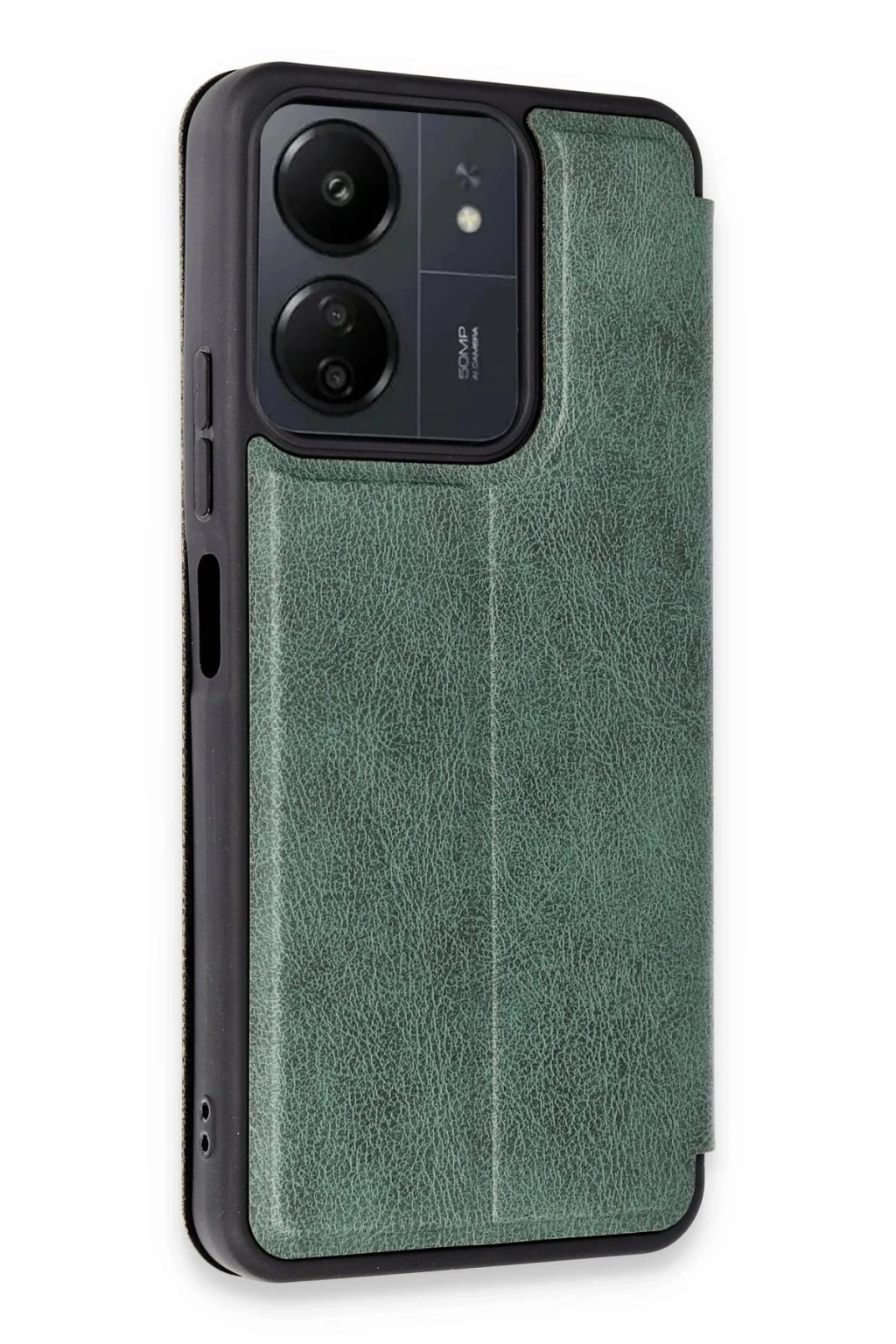 HarmonyAura Xiaomi Redmi 13c Kılıf Flip Cover - Koyu Yeşil