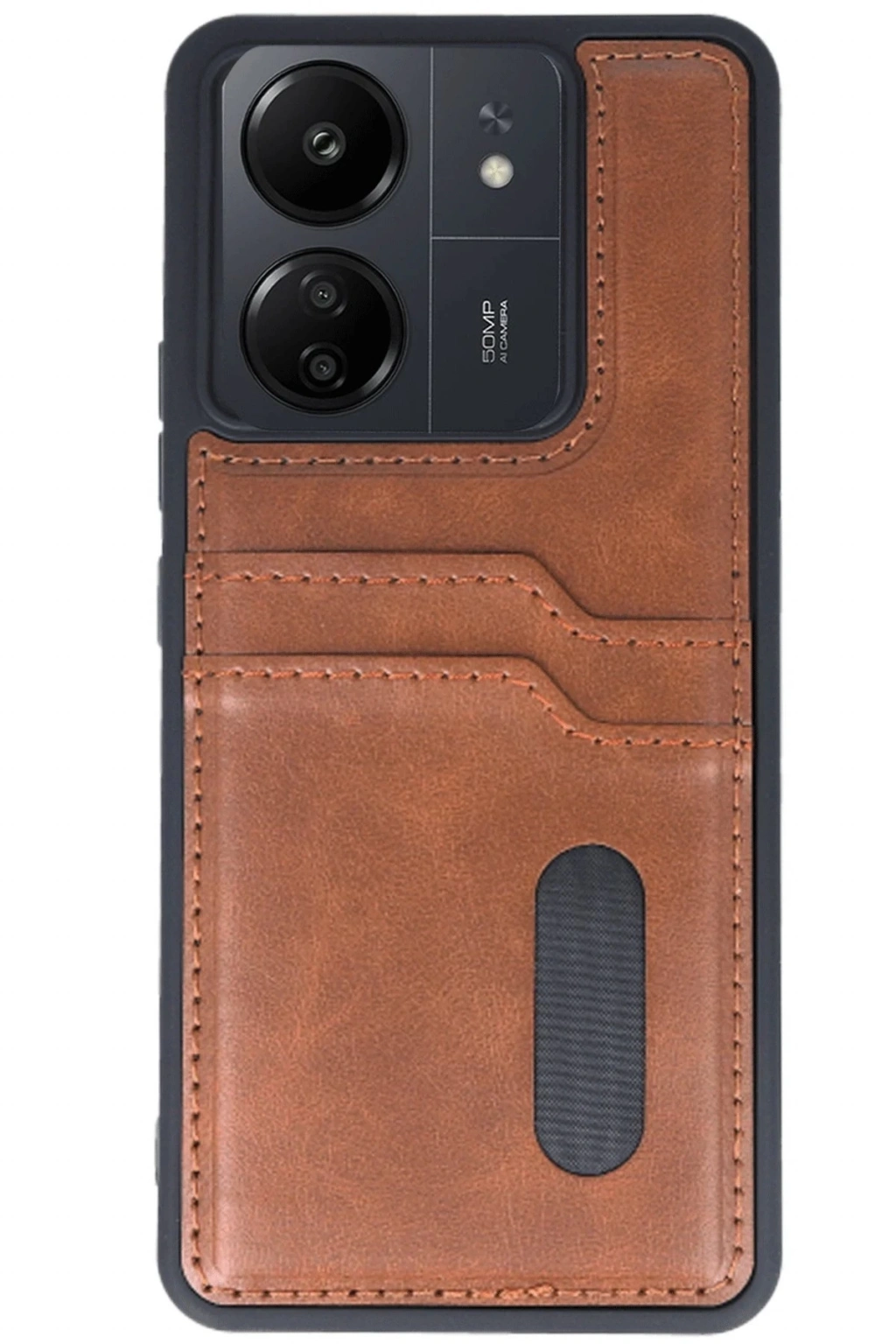 HarmonyAura Xiaomi Redmi 13c Kılıf Sara Kartvizitli Deri Kılıf - Taba