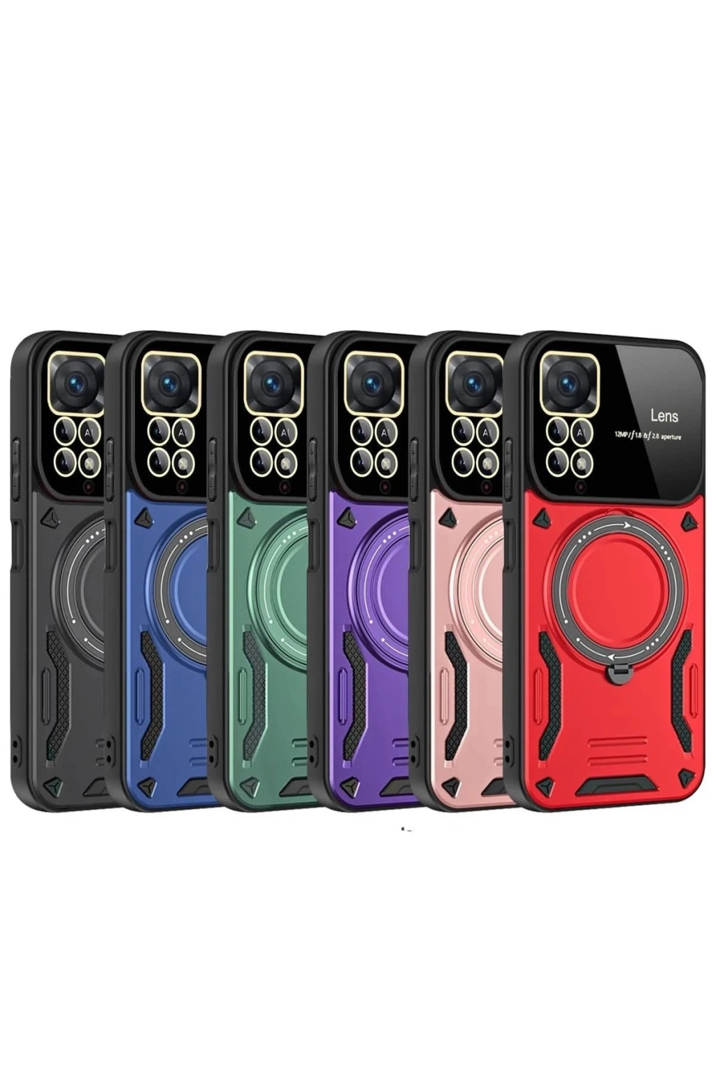 HarmonyAura Xiaomi Redmi Note 11 Pro Kılıf Joy Lens Standlı Kapak - Kırmızı