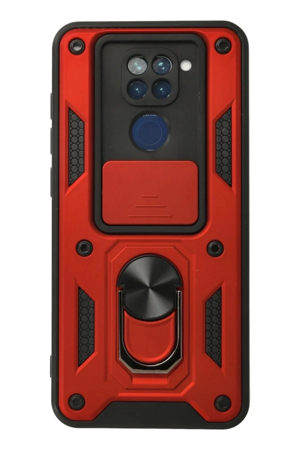 HarmonyAura Xiaomi Redmi Note 9 Kılıf Pars Lens Yüzüklü Silikon - Kırmızı