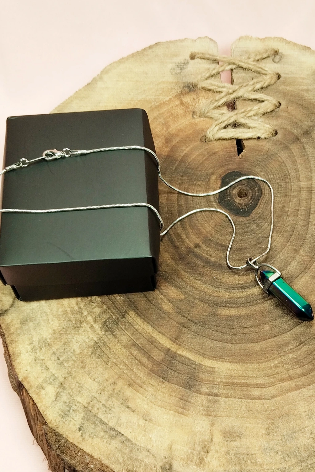 Hematit Doğal Taşı Zincirli El Yapımı Tasarımlı Kolye Uç: 3,5 Cm Zincir: 20 Cm Kutulu