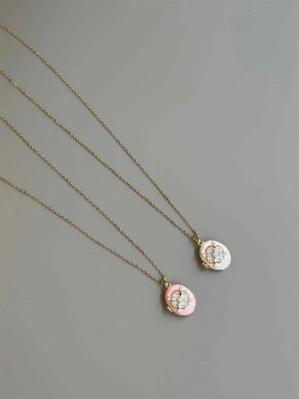İncili Etnik Desen Kapaklı Kolye - Pembe