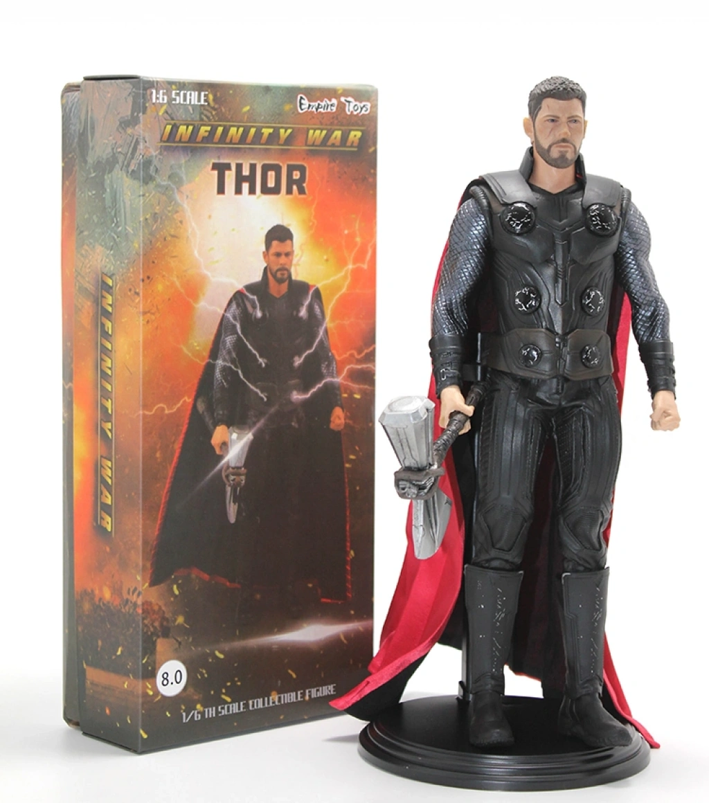 INFINITY WAR THOR FİGÜRÜ Ürün Özellikleri Infinity War Thor Figürü, Marvel Sinematik Evreni’nin en epik sahnelerinden biri olan Avengers: Infinity War filminde yer alan Thor karakterini güçlü ve karizmatik duruşuyla yansıtan özel bir koleksiyon figürüdür. Filmdeki zırh detayları, kaslı vücut yapısı, yüz ifadesi ve ikonik pelerini özenle modellenmiş olup, figür genelinde yüksek seviye işçilik dikkat çeker. Elinde yer alan balta detayı ve savaş pozisyonu, Thor’un Infinity War’daki güçlü halini birebir yansıtarak koleksiyon değerini artırır. Dayanıklı ve kaliteli polyester malzemeden üretilmiş olması sayesinde uzun süre formunu korur ve renk solması yapmadan sergilenebilir. Sağlam tabanı sayesinde dengeli bir duruş sunar ve vitrin, raf veya masa üstü sergilemeler için uygundur. Infinity War Thor Figürü, Marvel hayranları, Avengers koleksiyoncuları ve dekoratif figür arayanlar için hem görsel hem de tematik açıdan oldukça etkileyici bir seçenektir. Ev, ofis veya koleksiyon alanlarında dikkat çekici bir atmosfer oluşturur ve özel tasarımıyla öne çıkar. Paket İçeriği 1 adet Infinity War Thor Figürü