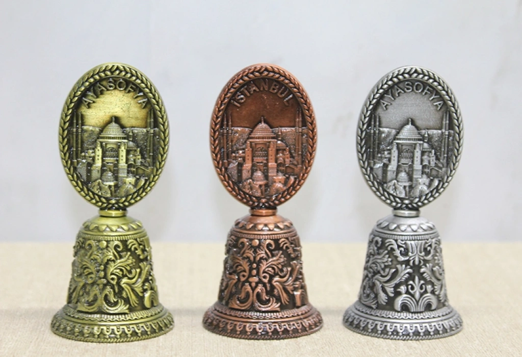 İSTANBUL TEMALI EL ÇANI - MODEL 2 Ürün Özellikleri İstanbul Temalı El Çanı - Model 2, şehir konseptli tasarımıyla dekoratif ve koleksiyonluk bir masaüstü ürünüdür. 10 cm boyutundaki kompakt yapısı sayesinde raf, vitrin ve çalışma masalarında şık bir tamamlayıcı olarak kullanılabilir. Üzerinde yer alan İstanbul temalı detaylar ürüne turistik ve estetik bir karakter kazandırır. Metal gövde yapısı sağlam bir duruş sunarken klasik el çanı formu dekoratif görünümünü ön plana çıkarır. Ev ve ofis ortamlarında dekoratif amaçlı tercih edilebilecek özel bir tasarıma sahiptir. Gönderim sırasında görselde yer alan renklerden biri karışık olarak gönderilmektedir. Şehir simgesi tasarımıyla öne çıkan bir İstanbul temalı el çanı modelidir. Dekoratif kullanım için ideal bir metal masaüstü çan alternatifidir. Ürün Teknik Özellikleri Özellik Açıklama Ürün Adı İstanbul Temalı El Çanı - Model 2 Boyut 10 cm Malzeme Metal Tema İstanbul Tasarımı Renk Görseldeki Renklerden Biri Karışık Olarak Gönderilir Kullanım Alanı Dekoratif Kullanım Paket İçeriği 1 Adet İstanbul Temalı El Çanı - Model 2