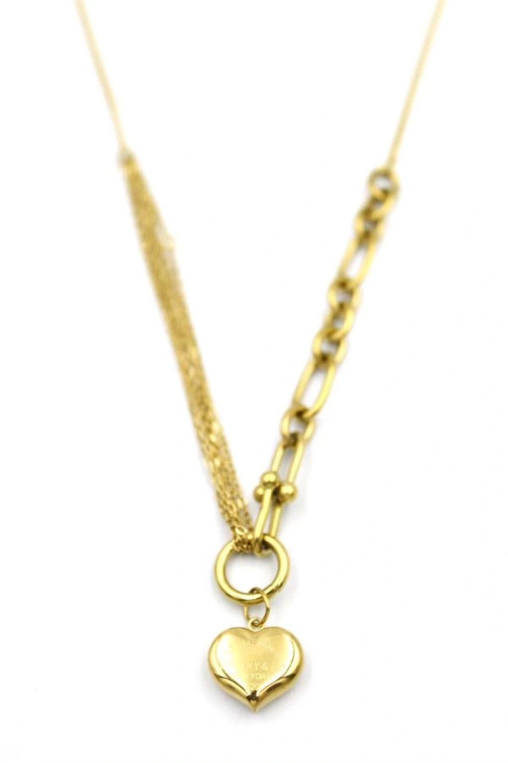 HarmonyAura Pirinç Gold Renk Kalp Model Kadın Kolye
