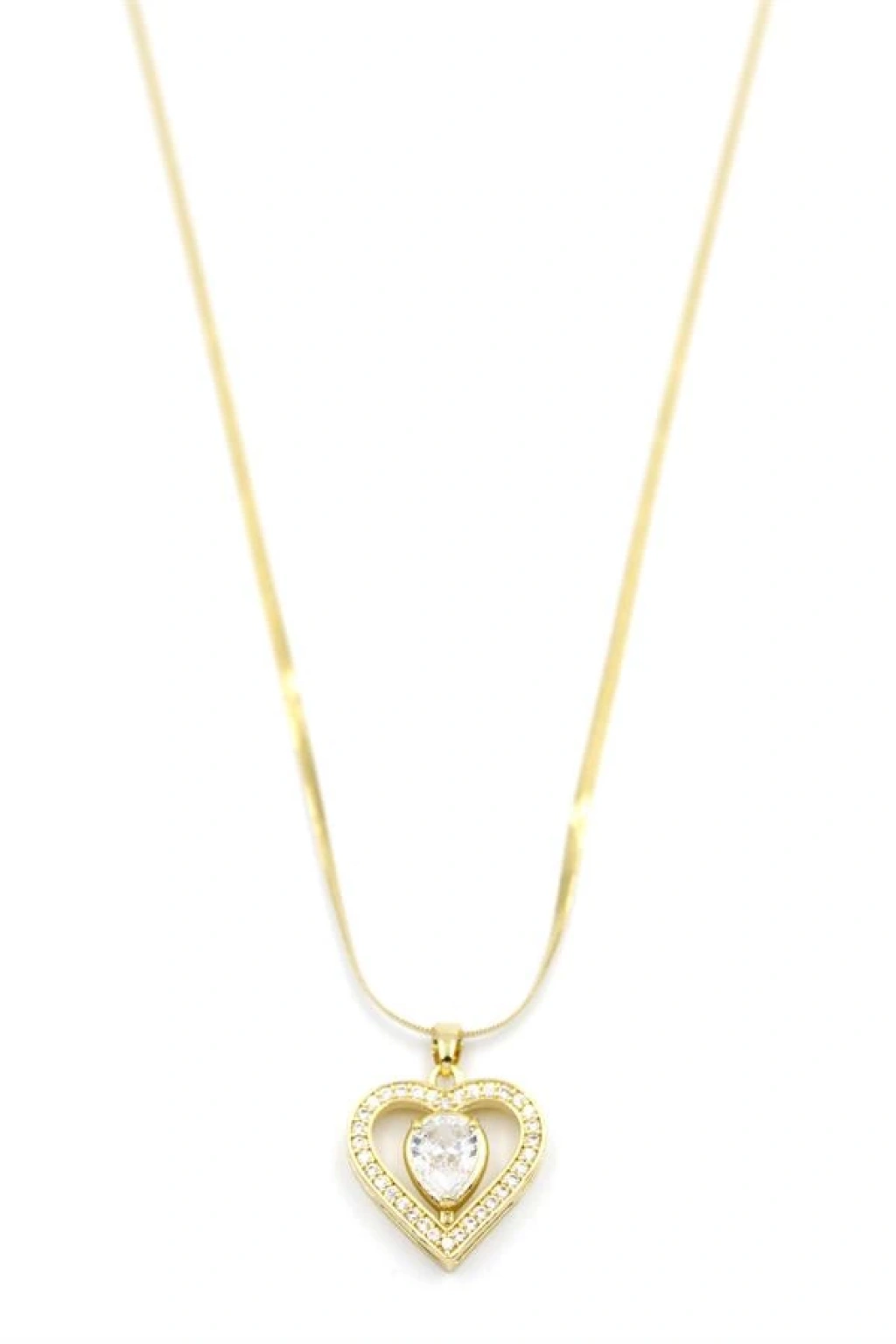 HarmonyAura Pirinç Gold Renk Kalp Model Kadın Kolye