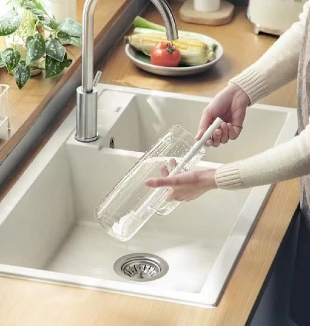KAVANOZ VE BİBERON YIKAMA FIRÇASI SİLİKON Kavanoz ve biberonlarınızı zahmetsizce temizlemek için mükemmel bir yardımcı! Bu silikon fırça, hem dayanıklılığı hem de etkin temizleme gücü ile öne çıkar. İşte bazı özellikleri:Silikon Kafası: Silikon malzeme, lekeleri ve kirleri nazikçe temizlerken aynı zamanda yüzeylere zarar vermez. Ayrıca, silikon kıllar bakteriyel birikimleri önlemeye yardımcı olur.Ergonomik Tasarım: Kolay kavranabilir ergonomik sapı sayesinde temizlik işlemi rahat ve konforlu bir şekilde yapılır. Uzun sapı, derin kavanozlar ve biberonlar gibi zor ulaşılan yerlerde bile etkili temizlik sağlar.Kolay Temizlik: Silikon malzeme sayesinde fırçayı temizlemek oldukça basittir. Sıcak su ve sabunla yıkanabilir, bu sayede hijyenik kalmasını sağlar.Çok Amaçlı Kullanım: Yalnızca biberon ve kavanozlar için değil, aynı zamanda diğer mutfak gereçleri ve aksesuarlar için de kullanabilirsiniz.Dayanıklı ve Uzun Ömürlü: Silikon malzeme, uzun süre dayanacak şekilde tasarlanmıştır ve sık kullanıma karşı dayanıklıdır.Bu silikon kavanoz ve biberon yıkama fırçası, hem bebekler hem de yetişkinler için güvenli ve etkili bir temizlik çözümü sunar. Mutfaktaki temizlik işlerinizi kolaylaştırın ve hijyen standartlarınızı yükseltin!