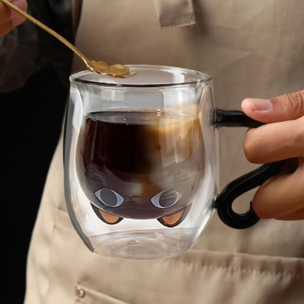 KEDİ FİGÜRLÜ ÇİFT CİDARLI CAM BARDAKÜrün Özellikleri Kedi figürlü çift cidarlı cam bardak, sevimli tasarımı ve modern görünümüyle içeceklerinizi çok daha keyifli bir şekilde tüketmenize yardımcı olur. Çift cidarlı yapısı sayesinde içeceklerin sıcaklığını daha uzun süre korurken dış yüzeyi elinizi yakmaz ve bu sayede rahat bir kullanım sağlar. 330 ml kapasitesi ile kahve, süt, latte, çay, soğuk içecekler ve aromalı içecekler için ideal bir boyut sunar. Dayanıklı borosilikat cam malzemeden üretilen bu bardak hafif, şık ve çizilmeye karşı dayanıklıdır. Hem yetişkinlerin hem de çocukların kullanımına uygun olan bu tasarım, masanıza dekoratif bir görünüm katar ve hediye olarak da mükemmel bir seçenek oluşturur. Paket İçeriği 1 Adet Kedi Figürlü Çift Cidarlı Cam Bardak
