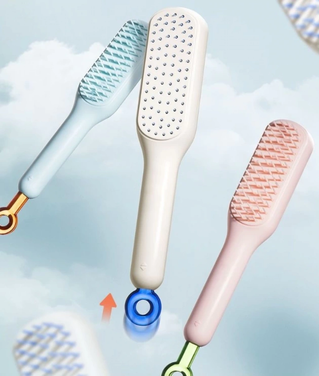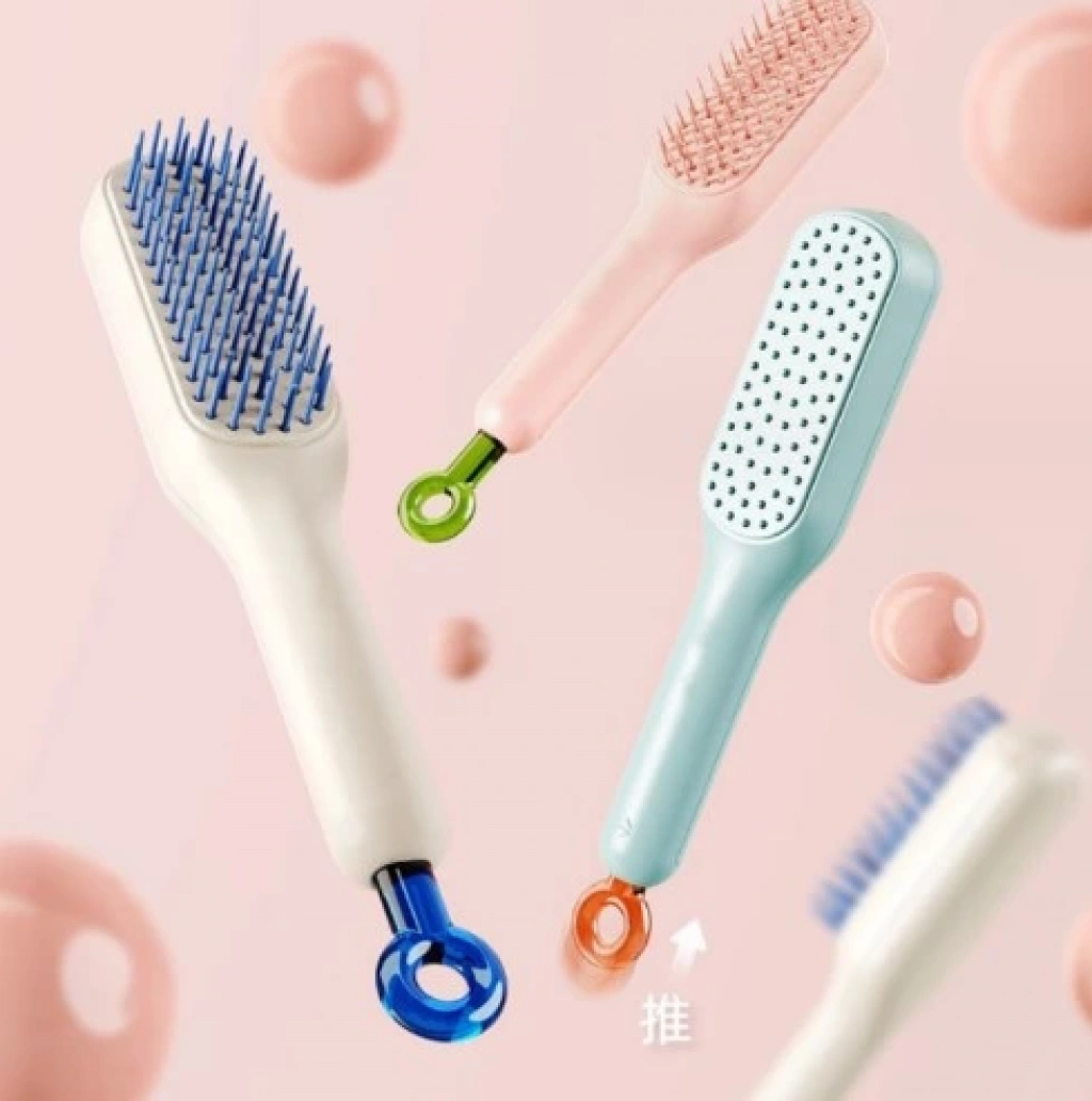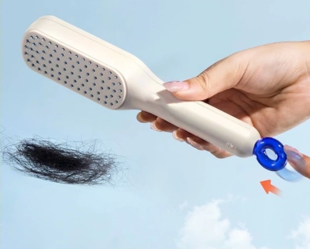 • KOLAY TEMİZLENEN SAÇ FIRÇASIÜrün AçıklamasıKendinden temizlenen saç fırçası, saçlarınızı tararken aynı zamanda tarakta biriken saçları kolayca toplar ve temizler. Sap kısmındaki kulpu bastığınızda, tarakta toplanan saçlar fırça üzerinden kolayca çıka