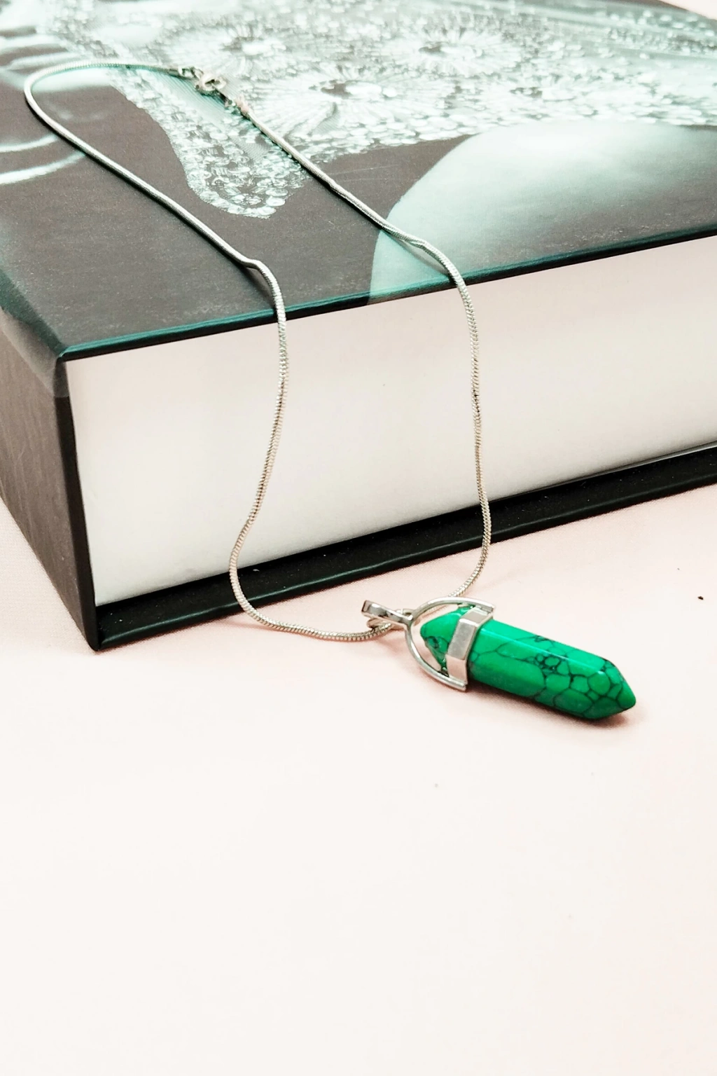 Krizopraz Doğal Taşı Zincirli El Yapımı Tasarımlı Kolye Uç: 3,5 Cm Zincir: 20 Cm Kutulu