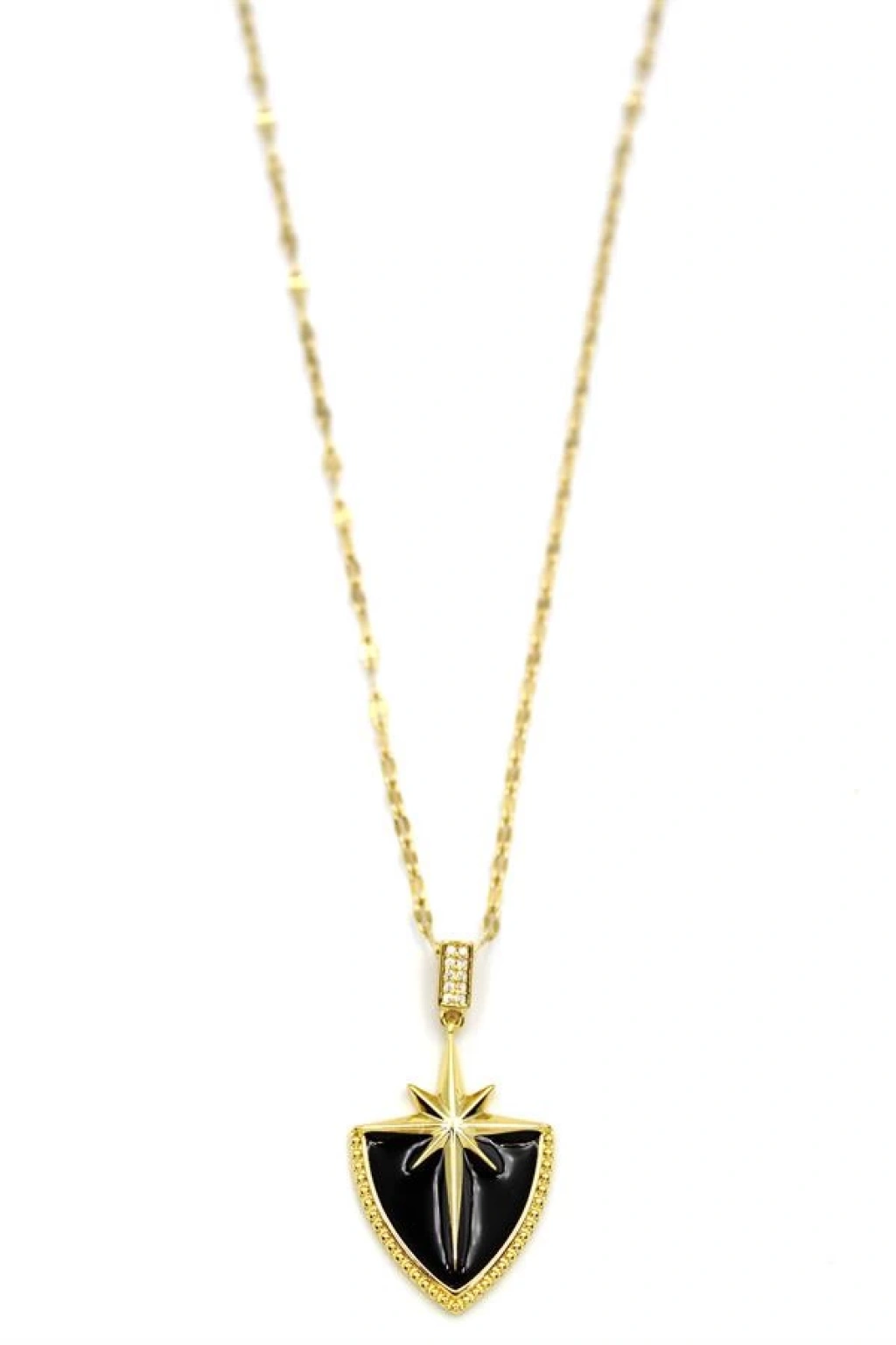 HarmonyAura Zirkon Taşlı Kutup Yıldızı Model Pirinç Gold Renk Kadın Kolye
