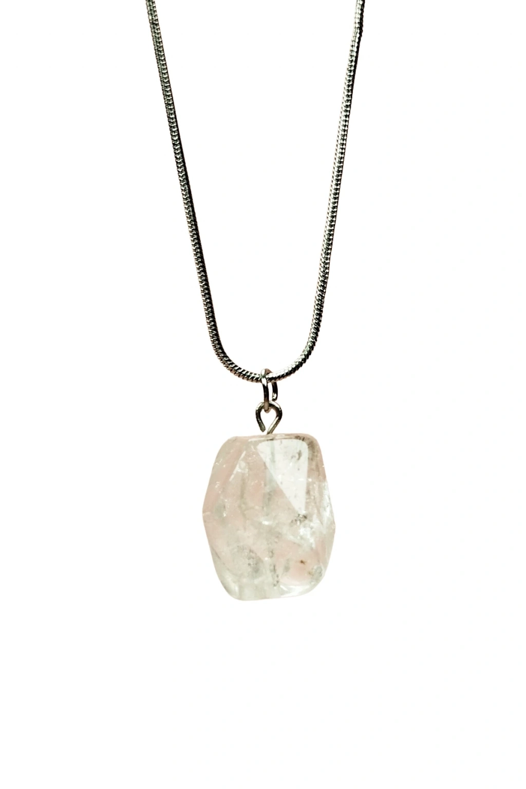 Kuvars Doğal Taşı Zincirli El Yapımı Kolye Uç: 2 Cm Zincir: 20 Cm Kutulu