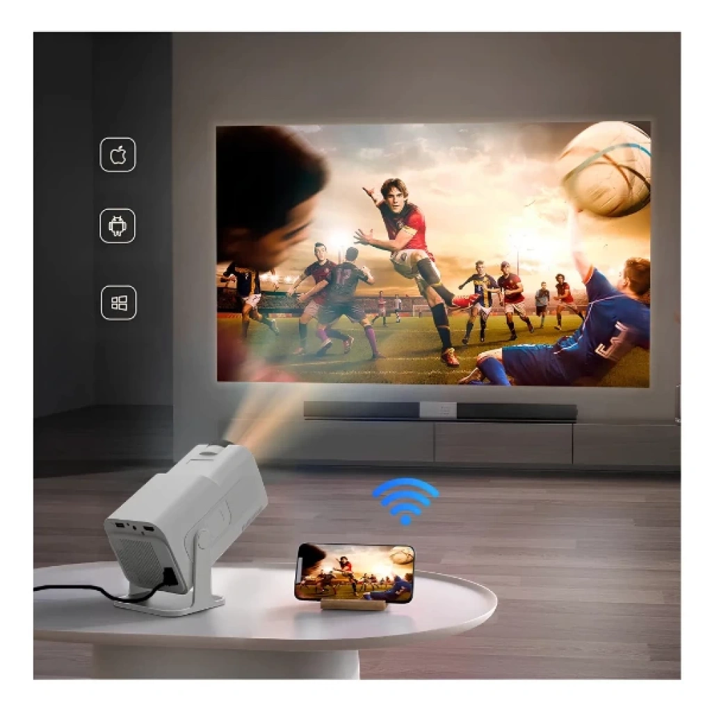 MİNİ TAŞINABİLİR PROJEKSİYON Ürün Özellikleri Evde, ofiste veya açık havada sinema keyfini yaşamak isteyenler için tasarlanan Mini Taşınabilir Projeksiyon, güçlü performansı ve şık kompakt tasarımıyla dikkat çekiyor. 150 inçe kadar dev ekran yansıtma özelliği sayesinde gerçek sinema deneyimini her ortamda yaşamanıza olanak tanır.Full HD 1080P çözünürlüğün yanı sıra 4K Ultra HD destekli bu akıllı projektör, 220 ANSI lümen parlaklık değeriyle son derece net, canlı ve kontrastı yüksek görüntüler sunar. Dahili Android sistemi, Netflix, YouTube ve 400’den fazla uygulamaya doğrudan erişim imkânı sağlar. Bluetooth ve Wi-Fi bağlantısı sayesinde kablosuz kullanım kolaylığı sunarken, tüm Android ve iOS cihazlarla tam uyumluluk gösterir.1GB RAM + 8GB dahili hafıza donanımıyla akıcı bir performans sunar ve film, sunum veya oyun deneyiminde kesintisiz bir kullanım sağlar. Dahili hoparlör, yüksek ses kalitesiyle ek ses sistemine ihtiyaç duymadan güçlü bir ses deneyimi yaşatır. 180° dönebilen başlığı, cihazı istediğiniz açıdan kolayca konumlandırmanızı sağlar.Kompakt yapısı ve kolay taşınabilirliğiyle iş toplantılarında, seyahatlerde veya ev sineması kurulumlarında ideal bir seçimdir. Paket İçeriği 1 adet Mini Taşınabilir Projeksiyon