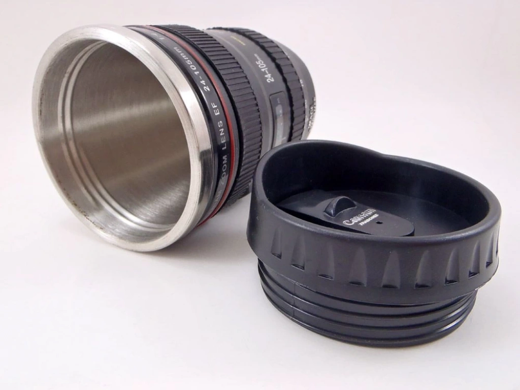 Objektif görünümlü termos bardak.