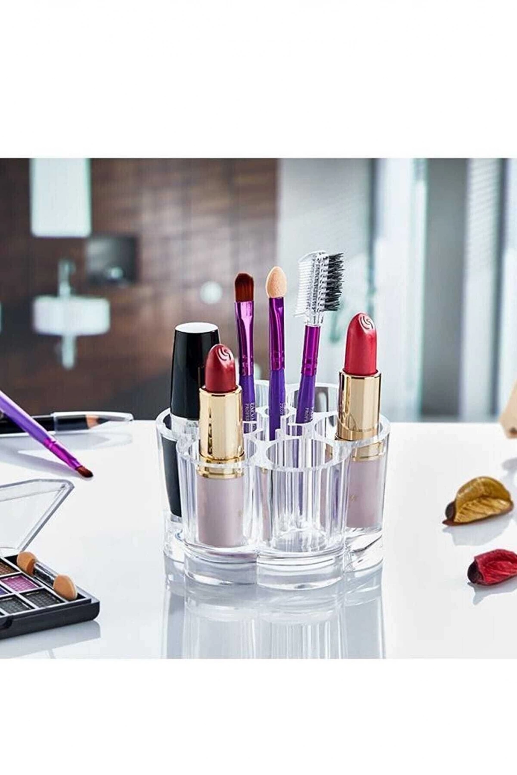 Ruj ve fırçalarınızı düzenleyerek hayatınızı kolaylaşırır. Orta bölüm, kalem, fırça gibi ince ürünler için. Dış kenarlar, daha geniş fırça, göz kremi gibi dikey kullanılan ürünlere uygundur. Çap : 9cmYükseklik : 6cm