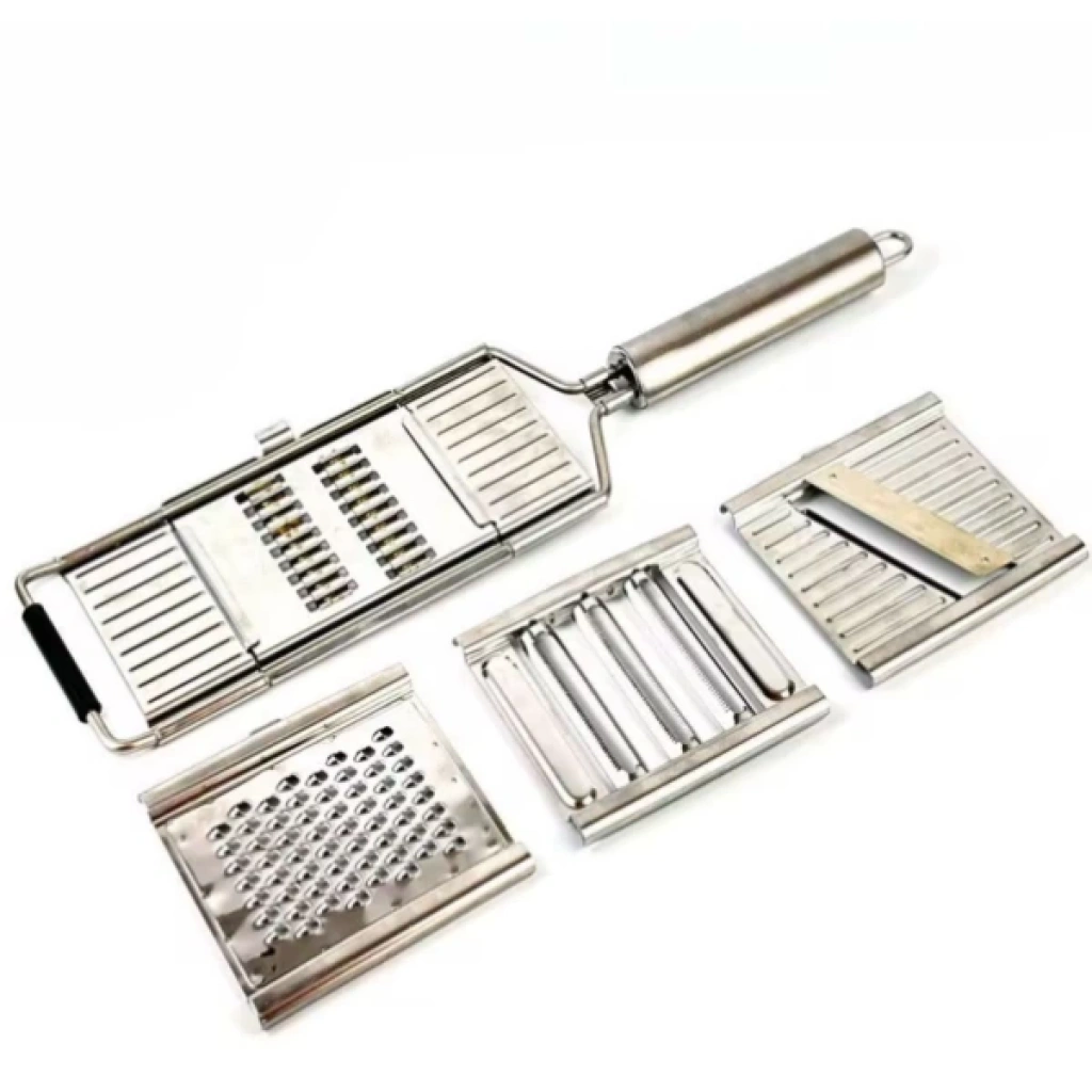 PASLANMAZ ÇELİK 4'LÜ SET EL RENDESİÜrün Özellikleri Mutfakta zamandan tasarruf sağlayan paslanmaz çelik 4’lü set el rendesi, hem dayanıklı yapısı hem de çok yönlü kullanımı ile dikkat çeker. Yüksek kaliteli paslanmaz çelikten üretilmiş olması sayesinde uzun ömürlü kullanım sunar ve paslanmaya karşı dirençlidir. Ergonomik tutma sapı elden kaymayı önleyerek güvenli bir kullanım sağlar. Set içerisinde yer alan farklı başlıklar sayesinde sebze, meyve, peynir, havuç, salatalık gibi birçok ürünü kolayca dilimleyebilir, rendeleyebilir veya jülyen kesebilirsiniz. Pratik şekilde değiştirilebilen başlıklar, mutfakta ihtiyaca göre hızlı çözümler sunar. Temizliği son derece kolay olan ürün, elde veya bulaşık makinesinde yıkanabilir. Hem profesyonel mutfaklar hem de ev kullanımı için idealdir. Paket İçeriği 1 adet Paslanmaz Çelik 4'lü Set El Rendesi