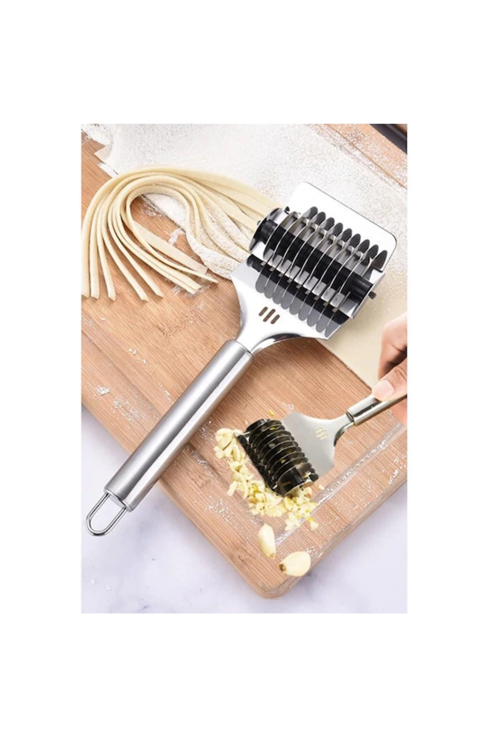 Tek hamlede kusursuz bir şekilde erişte kesmenizi sağlayacak harika bir yardımcı. Mükemmel tasarımıyla sarımsak soğan maydonoz ve birçok sebzenizi ve hamurunuz kesmenize ezmenizeyardımcı Çok Fonksiyonlu yeni bir favori ürün Erişte yapımını zahmetsiz hale getirir. Eşit şekilde kesim sağlar. Zamandan tasarruf sağlar. Paslanmaz çelik malzemeden üretilmiştir.
