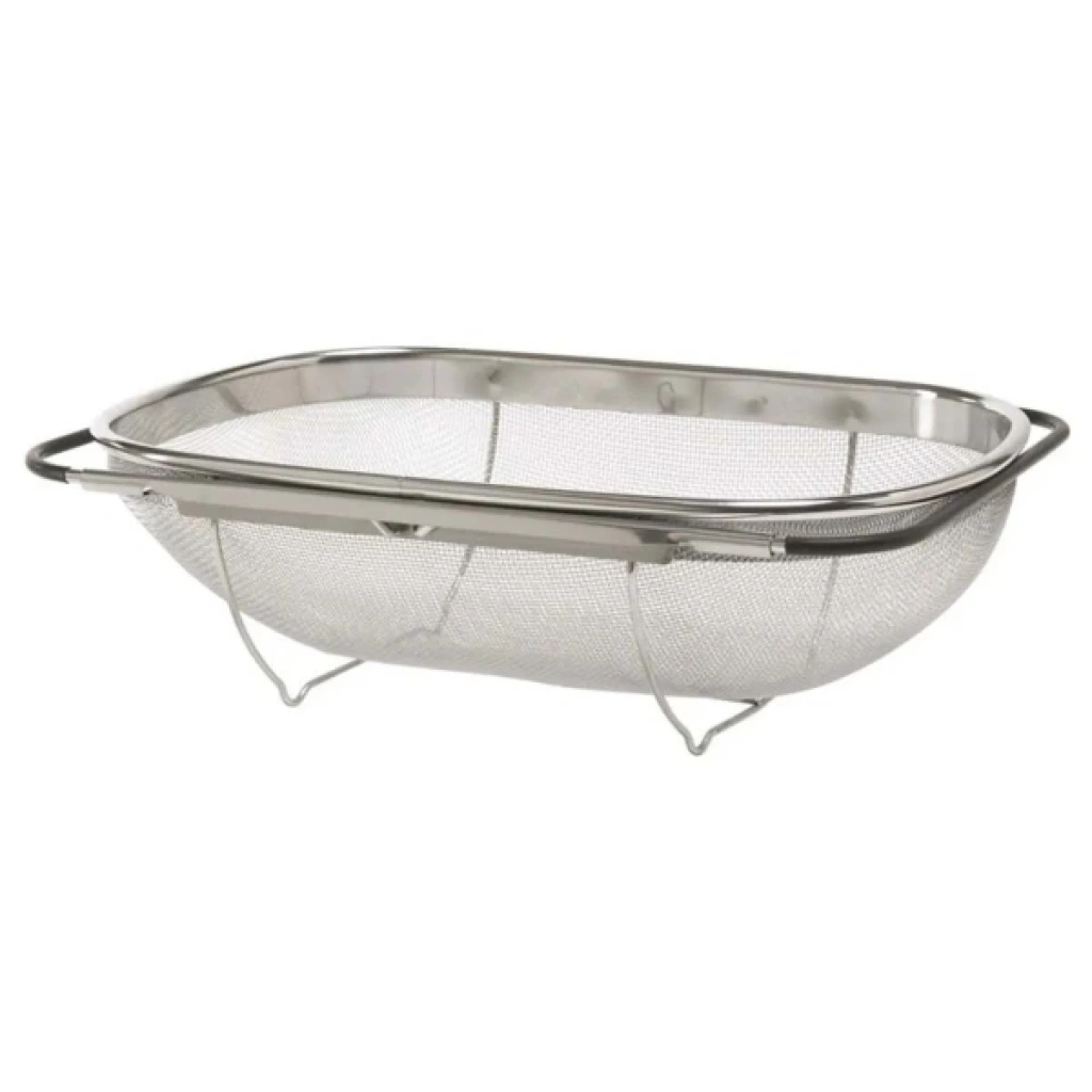 PASLANMAZ ÇELİK TELESKOPİK SÜZGEÇÜrün Özellikleri Paslanmaz çelik teleskopik süzgeç, meyve, sebze, makarna gibi yiyecekleri yıkamak veya süzmek için kullanılır. Dayanıklı paslanmaz çelik yapısı uzun ömürlüdür ve etkili süzme sağlar. İnce delikli tel örgü yapısı sayesinde küçük parçaların kaçmasını önler. Teleskopik açılıp kapanabilir yan kolları, süzgecin lavabo üzerine kolayca yerleştirilmesini sağlar ve farklı lavabo genişliklerine uyum gösterir. Süzgeç, katlanabilir ayakları sayesinde yerden yükseltilerek daha hijyenik kullanım sunar. Hem ev tipi mutfaklar hem de profesyonel mutfaklar için uygundur. Paket İçeriği 1 Adet Paslanmaz Çelik Teleskopik Süzgeç
