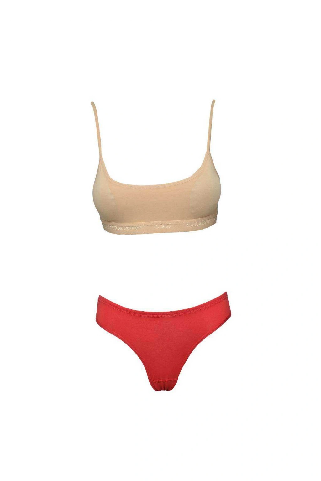 PAKET İÇERİĞİ; 1 ADET TEN RENGİ PEDLİ BÜSTİYER 1 ADET KIRMIZI LİKRALI SLİP KÜLOT