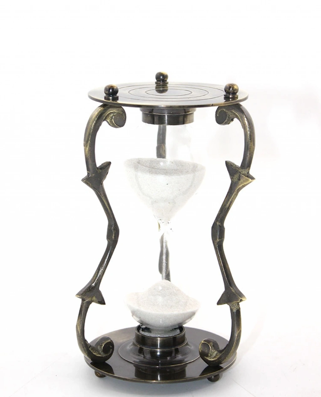 • PİRİNÇ KUM SAATİ MODEL 4Ürün ÖzellikleriAntik pirinç kaplama tasarımıyla öne çıkan bu dekoratif kum saati, estetik ve nostaljik bir hava katmaktadır. Özenle işlenmiş metal çerçeve, klasik bir dokunuş sağlarken, kum haznesi şeffaf camdan üretilmiştir.