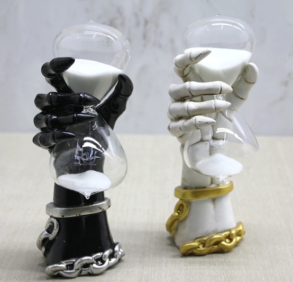POLYESTER EL TASARIMLI KUM SAATİ Ürün Özellikleri Polyester El Tasarımlı Kum Saati, dikkat çekici el figürü tasarımı ve modern görünümüyle dekoratif objeler arasında öne çıkan şık bir aksesuardır. 22x11 cm boyutundaki yapısı sayesinde hem masaüstünde hem de raflarda estetik bir duruş sergiler. Kum haznesinin zarif geçişi, zamanın akışını görsel bir deneyime dönüştürür. 1. sınıf polyester malzemeden üretilmiş olup dayanıklı ve uzun ömürlü bir kullanım sunar. Renk seçimi yapılamaz; görselde yer alan renklerden biri karışık olarak gönderilir. Paket İçeriği 1 adet Polyester El Tasarımlı Kum Saati