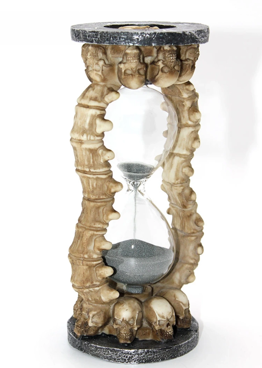 POLYESTER KURUKAFA KUM SAATİ MODEL 2Ürün ÖzellikleriPolyester Kurukafa Kum Saati Model 2, şık ve etkileyici bir tasarıma sahip olan, kurukafa figürlü bir kum saati modelidir. Polyester malzeme ile üretilmiş olup, sağlam ve uzun ömürlüdür. Kafatası figürleri etrafında şekillenen özgün tasarım, ürünü farklı ve dikkat çekici kılar. Koyu renkli kum ve güçlü detaylar, hem dekoratif hem de işlevsel bir deneyim sunar. Bu kum saati, hem görsel hem de işlevsel olarak her ortama estetik bir dokunuş ekler.Paket İçeriği1 adet Polyester Kurukafa Kum Saati Model 2