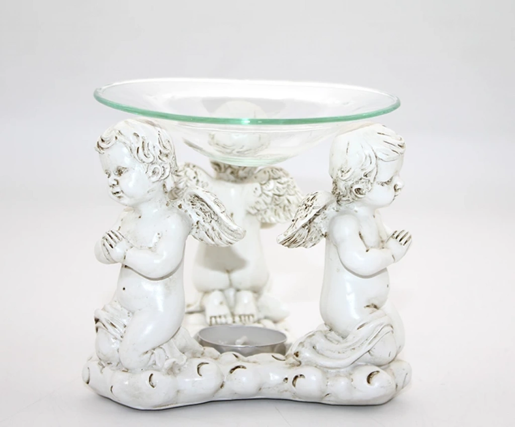 POLYESTER MELEKLİ BUHURDANLIK MODEL 1Ürün ÖzellikleriPolyester Melekli Buhurdanlık Model 1 zarif ve estetik tasarımıyla dikkat çeker. Üzerindeki melek figürleri, dua eden çocuk melekler ile tasarlanmış olup, romantik ve manevi bir atmosfer yaratır. Cam tepsi kısmı, buhurdanlık olarak kullanılan ürünü tamamlar. Bu buhurdanlık, ev dekorasyonuna manevi bir dokunuş katarken, odalara hoş bir koku ve huzur verir. Melek figürlerinin oluşturduğu atmosfer, özellikle özel günler ve hediye olarak kullanılabilir.Paket İçeriği1 adet Polyester Melekli Buhurdanlık Model 1