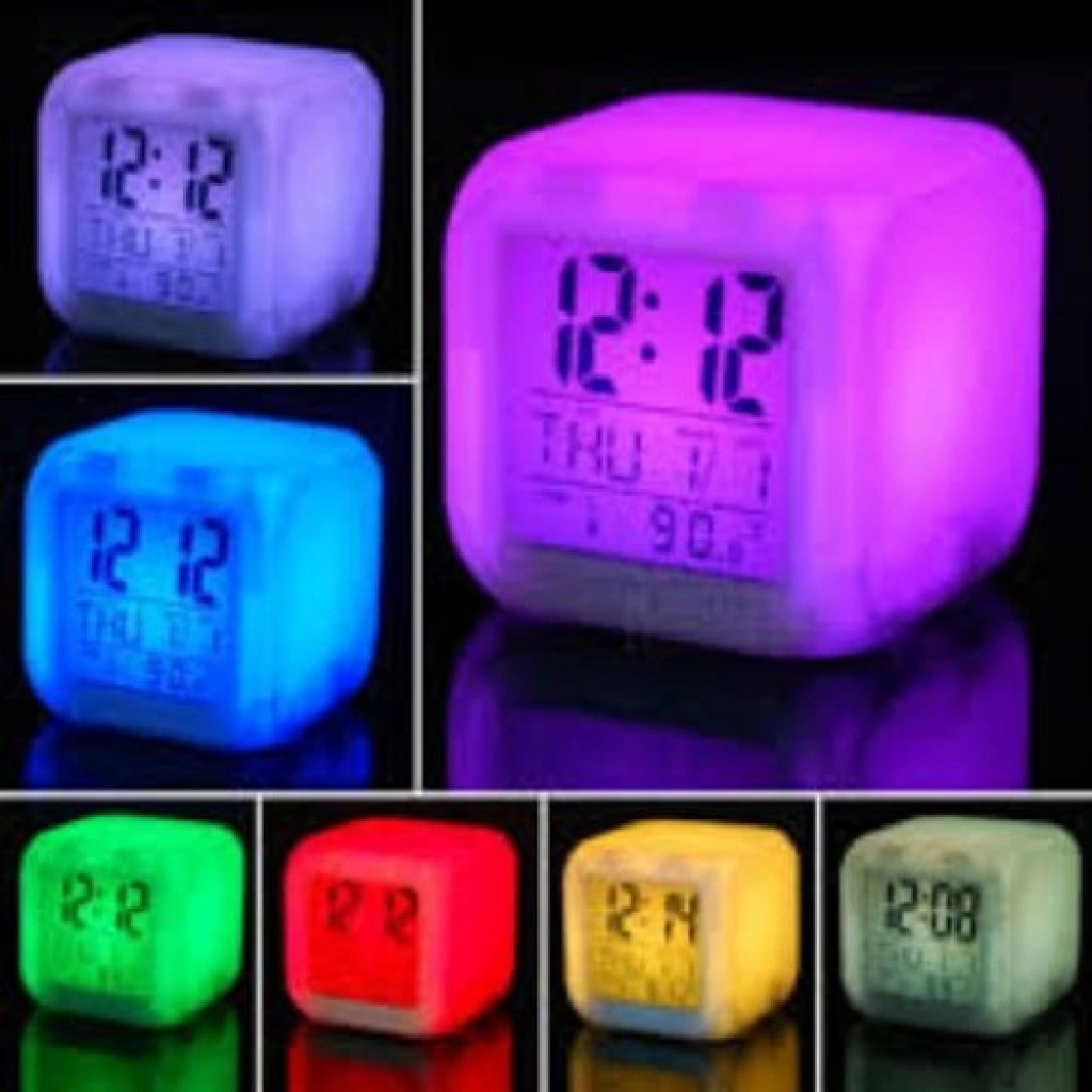 RENK DEĞİŞTİREN KÜP SAAT Etrafına verdiği ışık ve rengi gördükten sonra sıradaki renge geçmesi için sizin de sabırsızlıkla bekleyeceğiniz şüphesiz. Gece saati görmek için dokunmanız yeterli. Tüm gövdesi ve ekranı ile birli