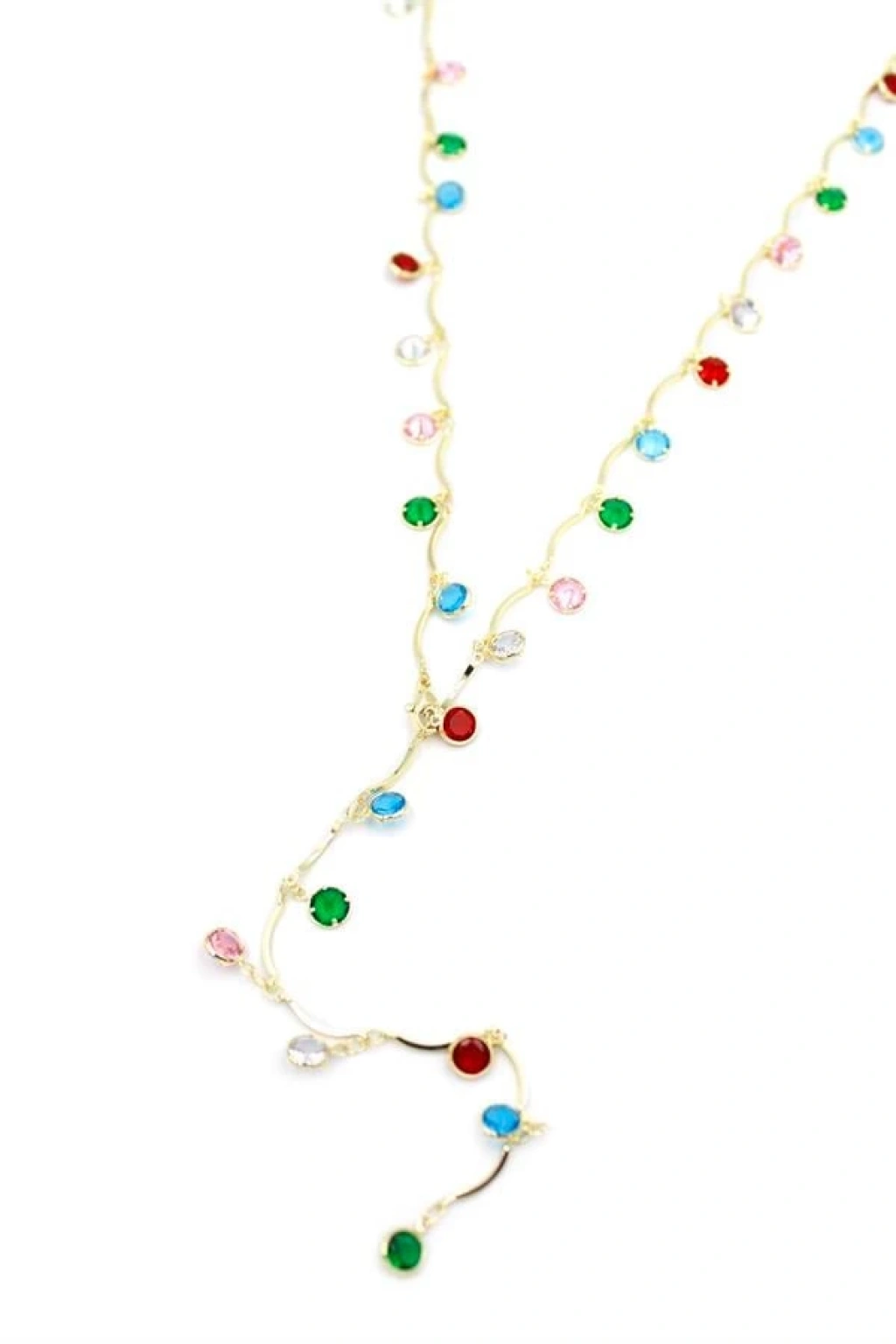 HarmonyAura Pirinç Gold Renk Zirkon Taşlı Çiçek Model Kadın Kolye