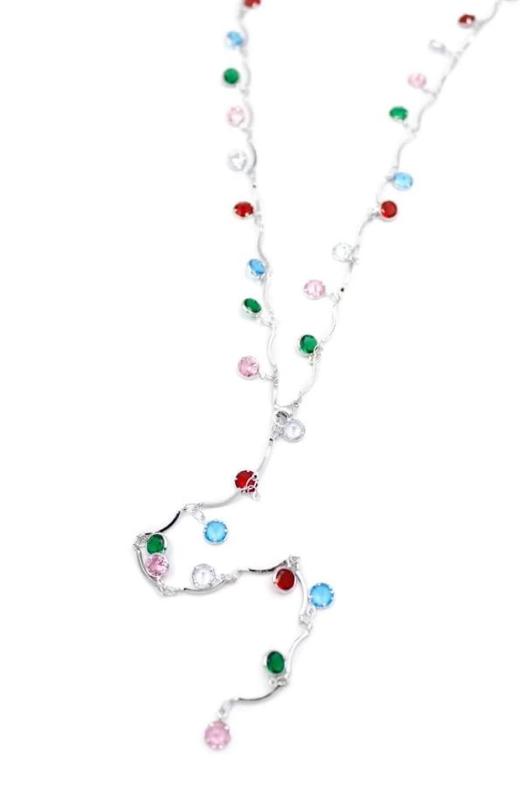 HarmonyAura Pirinç Gümüş Renk Zirkon Taşlı Çiçek Model Kadın Kolye