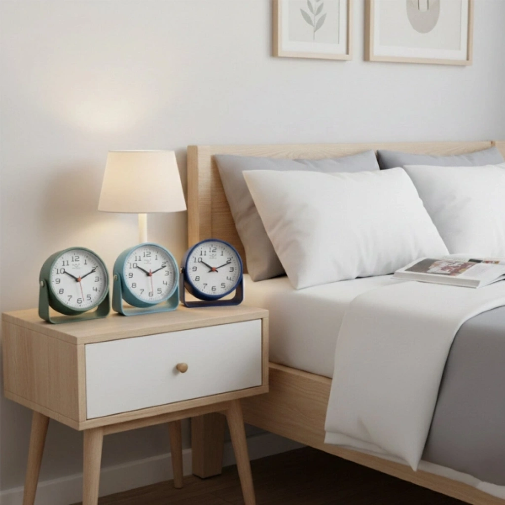 RENKLİ YUVARLAK MASA ÇALAR SAATİ Ürün Özellikleri Renkli Yuvarlak Masa Çalar Saati, modern minimalist tasarımı ve huzur veren pastel tonlarıyla yaşam alanlarınıza hem şıklık hem de fonksiyonellik katıyor. 9.5 cm çapındaki ideal boyutu ve yuvarlak hatları, her türlü dekorasyon stiline mükemmel uyum sağlar. Yüksek kaliteli renkli plastik kasası ve kavisli ayak yapısı sayesinde masa üstünde dengeli ve estetik bir duruş sergiler. Net okunabilir rakamları ve ince akrep-yelkovan tasarımı, zamanı bir bakışta kolayca takip etmenizi sağlar. Gece kullanımı için tasarlanmış ışıklı kadran özelliği, karanlıkta gözünüzü yormadan saati görmenize yardımcı olur. Güçlü alarm mekanizması ile güne zamanında başlamanızı garanti eden bu modern masa saati, pilli çalışma sistemi sayesinde kablo kısıtlaması olmadan evin her köşesinde kullanılabilir. Mat yüzey kaplaması ve şık renk seçenekleriyle ofis masanızdan yatak odası komodininize kadar her yerde fark yaratır. Hem kendiniz için pratik bir çalar saat hem de sevdikleriniz için modern bir hediyelik obje arıyorsanız bu ürün tam size göre. Ürün Teknik Özellikleri Özellik Açıklama Ürün Adı Renkli Yuvarlak Masa Çalar Saati Boyut (Çap) 9.5 cm Malzeme Premium Mat Plastik Kasa Fonksiyon Çalar Saat (Alarm) ve Gece Işığı Güç Kaynağı Pilli (Standart kalem pil ile çalışır) Renk Seçeneği 4 Farklı Pastel Renk (Görseldeki renklerden biri karışık gönderilir) Tasarım Minimalist Yuvarlak Kasa ve Entegre Destek Ayağı Paket İçeriği 1 Adet Renkli Yuvarlak Masa Çalar Saati