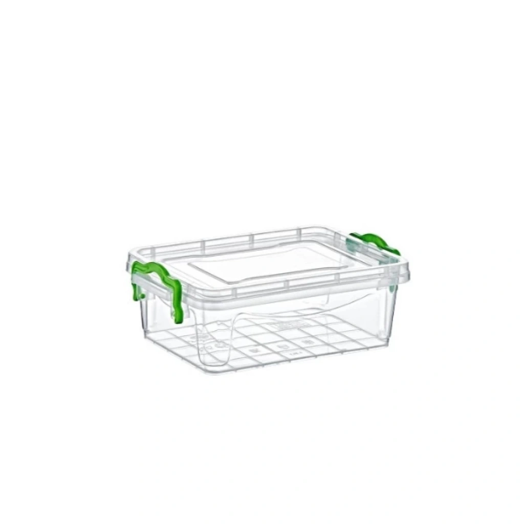 ŞEFFAF SAKLAMA KUTUSU 1.2 LİTREÜrün Özellikleri Kompakt tasarımıyla mutfaktan ofise, ev düzeninden hobi alanlarına kadar birçok yerde kullanım için ideal olan Şeffaf Saklama Kutusu 1.2 Litre, düzenli bir yaşam alanı oluşturmak isteyenler için mükemmel bir çözümdür. 10x14x21 cm ölçülerindeki bu kutu, küçük ama etkili bir depolama alanı sunar.Tamamen şeffaf gövdesi, içindekileri açmadan görebilmenizi sağlar. Yeşil klipsli kapağı, kutunun güvenli şekilde kapanmasını sağlar ve içeriği toz, nem veya sıvıdan korur. Sağlam plastik malzemesiyle uzun ömürlü kullanım sunar, BPA içermeyen yapısı sayesinde gıda saklamaya da uygundur.Baharat, kuru gıda, el işi malzemeleri, ofis aksesuarları veya kozmetik ürünleri gibi küçük eşyaları düzenlemek için idealdir. Ayrıca istiflenebilir yapısı sayesinde dolaplarda yer tasarrufu sağlar ve düzenli bir görünüm oluşturur. Paket İçeriği 1 adet 1.2 litrelik şeffaf saklama kutusu
