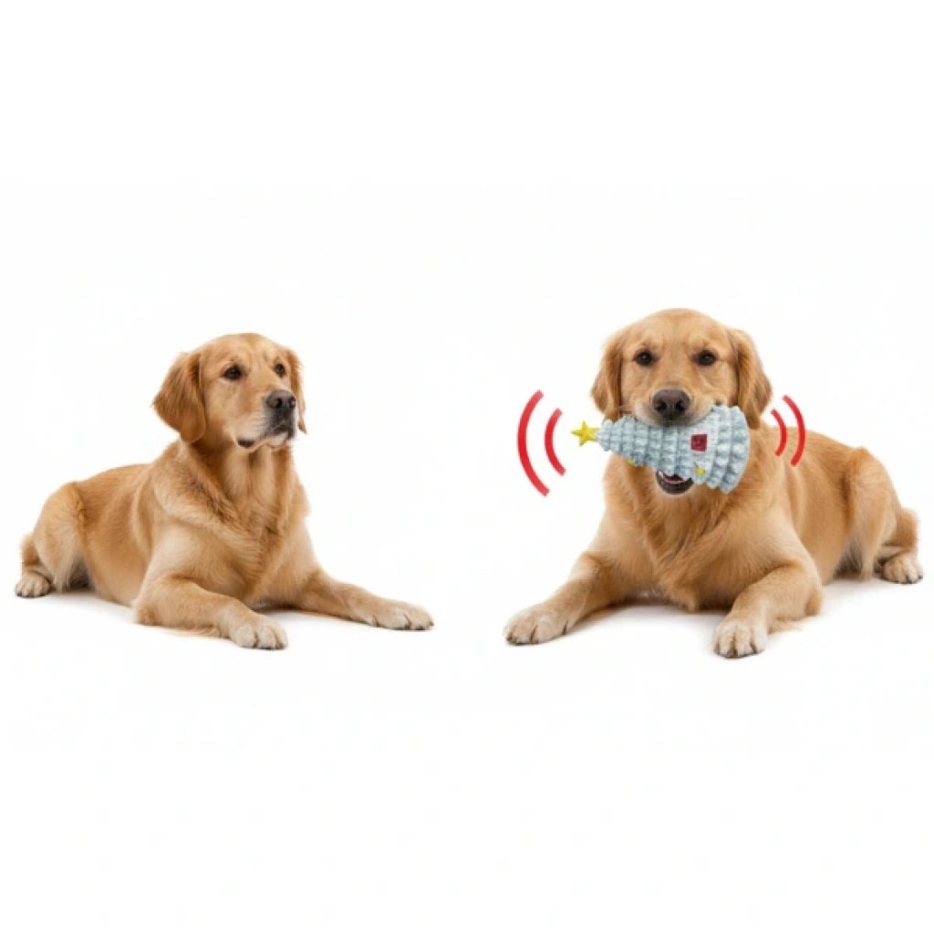 SESLİ ÇAM AĞACI TASARIMLI OYUNCAKÜrün Özellikleri Sesli Çam Ağacı Tasarımlı Oyuncak, şık yılbaşı konsepti ve eğlenceli ses efektleriyle köpeğinizin oyun keyfini ikiye katlar. Dayanıklı dokusu sayesinde diş ve çene hareketlerine karşı üstün direnç gösterir ve uzun süre yıpranmadan kullanılabilir. Yumuşak ama sağlam malzemesi, hem çiğneme hem yakalama oyunlarında güvenli bir deneyim sunar. Sıkıldığında çıkan ses, köpeğinizin merak ve av içgüdüsünü tetikleyerek oyunu daha heyecanlı hale getirir. Hafif yapısı sayesinde köpeğiniz rahatlıkla taşıyabilir ve ister ev içinde ister dış mekânda keyifle oynayabilir. Toksik madde içermeyen güvenli materyaller kullanıldığı için patili dostunuzun sağlığına tamamen uygundur. Temizlenmesi kolay yüzeyi hijyenik bir kullanım sunarken yılbaşı temalı sevimli çam ağacı tasarımı da oyuncağı daha cazip hale getirir. Paket İçeriği 1 adet sesli çam ağacı oyuncak