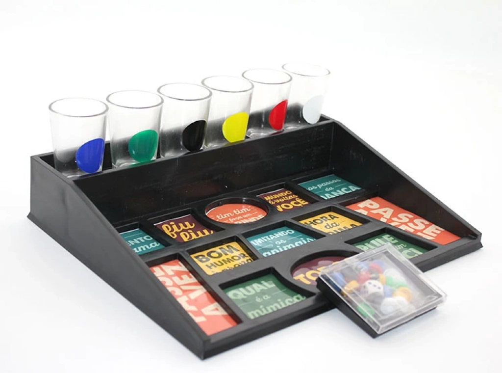 SHOT BARDAK OYUNU MODEL 2Ürün ÖzellikleriShot Bardak Oyunu Model 2, 6 kişilik eğlenceli bir içki oyun setidir. Setin içinde 6 adet shot bardak bulunur. Oyunun amacı, zarı atarak belirli görevleri yerine getirmektir. Arkadaşlarınızla birlikte eğlenceli anlar yaşayabileceğiniz, sosyal ortamlarda keyifle kullanılabilecek bir üründür. Zarla birlikte gelen 6 bardak, her bir oyuncuya özgü içki servisi yapmanızı sağlar. Dayanıklı yapısı ve eğlenceli özellikleri ile harika bir içki oyunudur.Paket İçeriği6 adet shot bardak