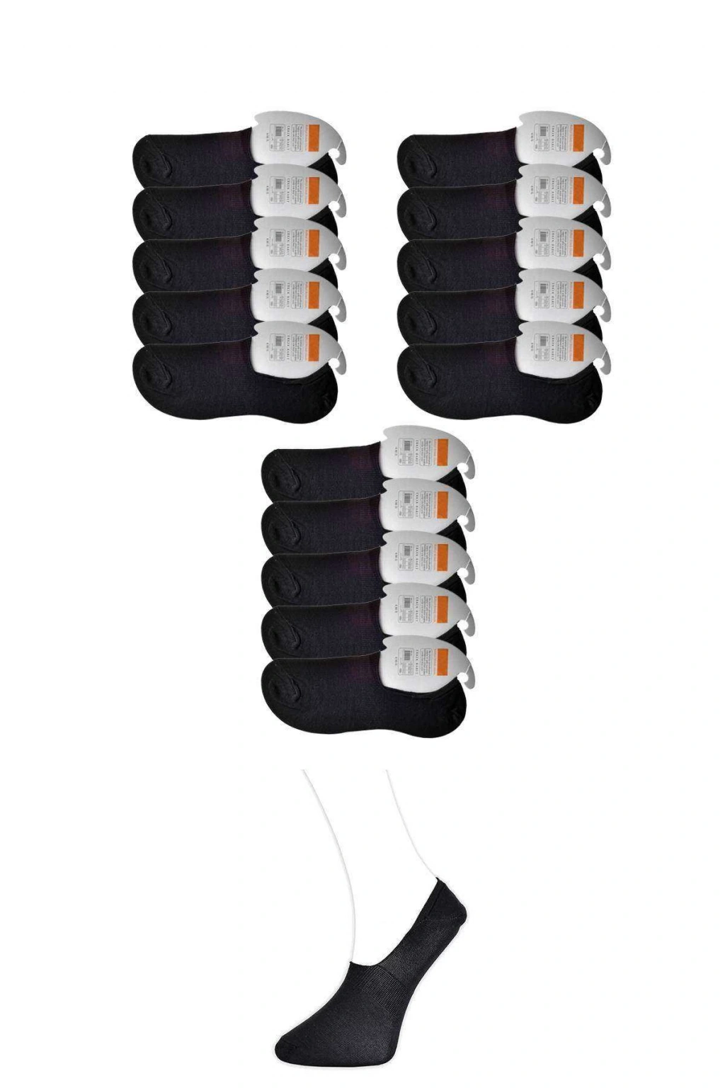 Siyah Erkek Görünmez Çorap 15 Çift