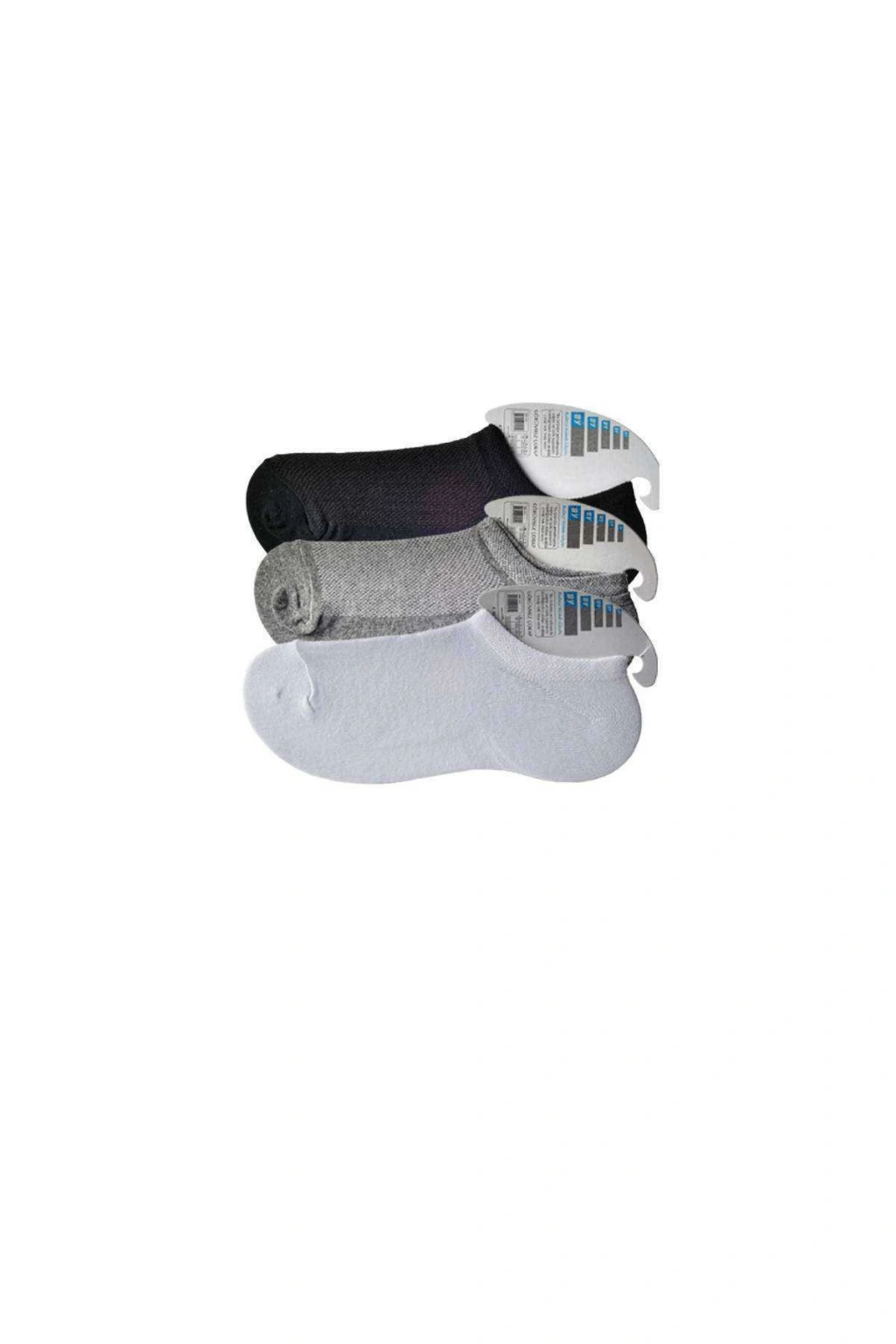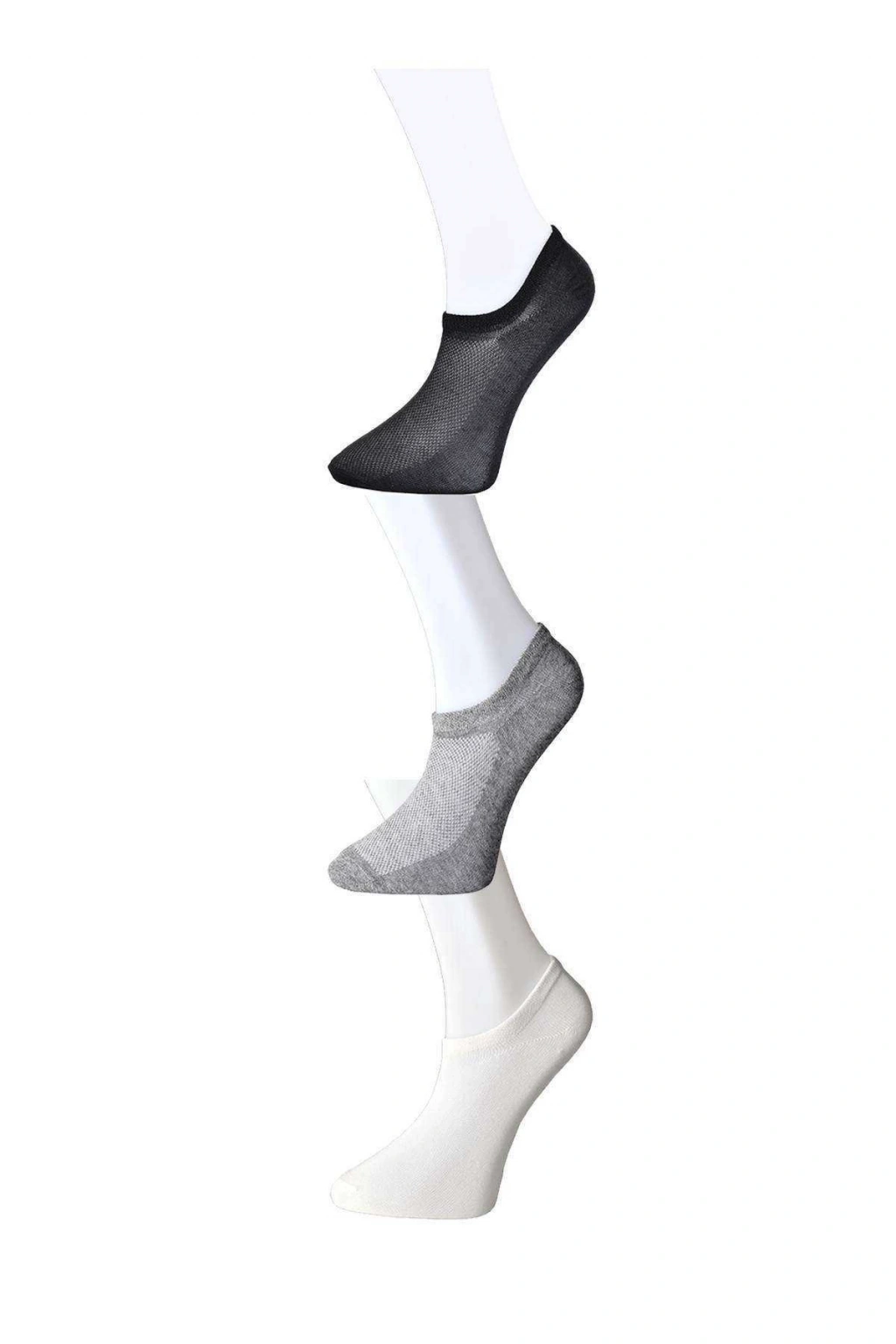 Siyah Gri Ve Beyaz Erkek Görünmez Çorap 3 Çift